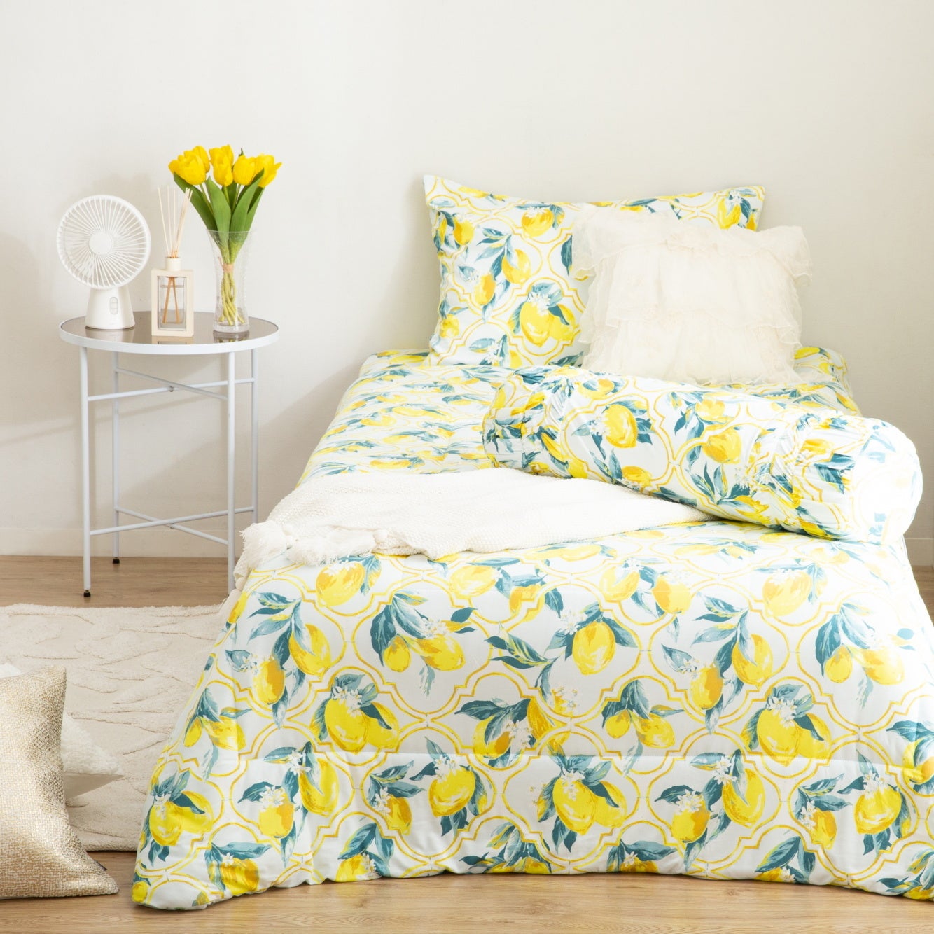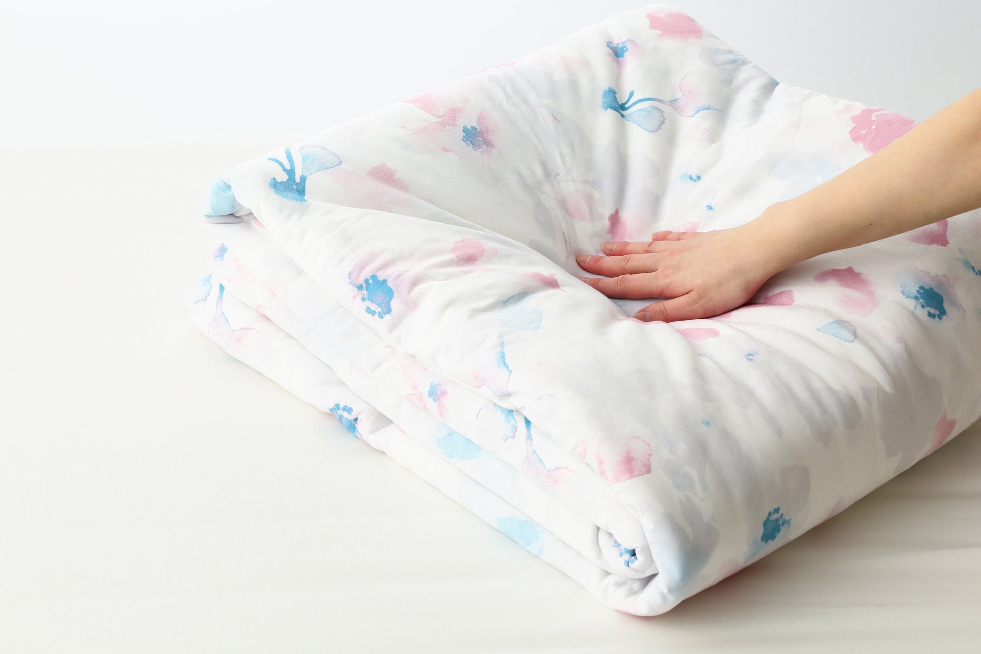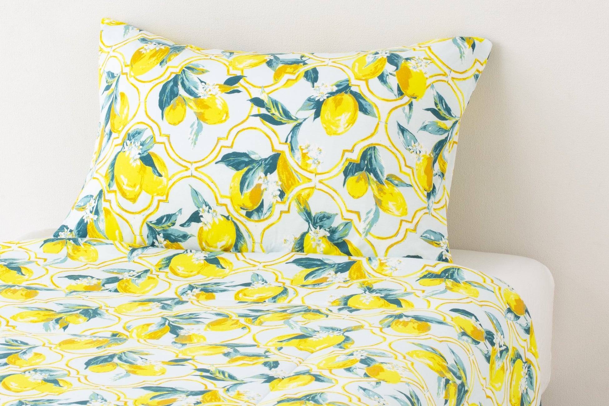 トレンド感あるクラシカルな草木柄と鮮やかな色味でフレッシュに表現したレモン柄、どちらも爽やかで涼しさを演出できる夏らしいデザインの新作が登場です。表・裏生地に自然なひんやり感のあるレーヨン素材を使用しており、春夏にぴったりの気持ちの良い肌触りをお楽しみいただけます。肌掛けふとん、ベッドパッドの中わたにはマイクロポリエステルわたを使用しており、滑らかでふわふわした触り心地も特徴です。