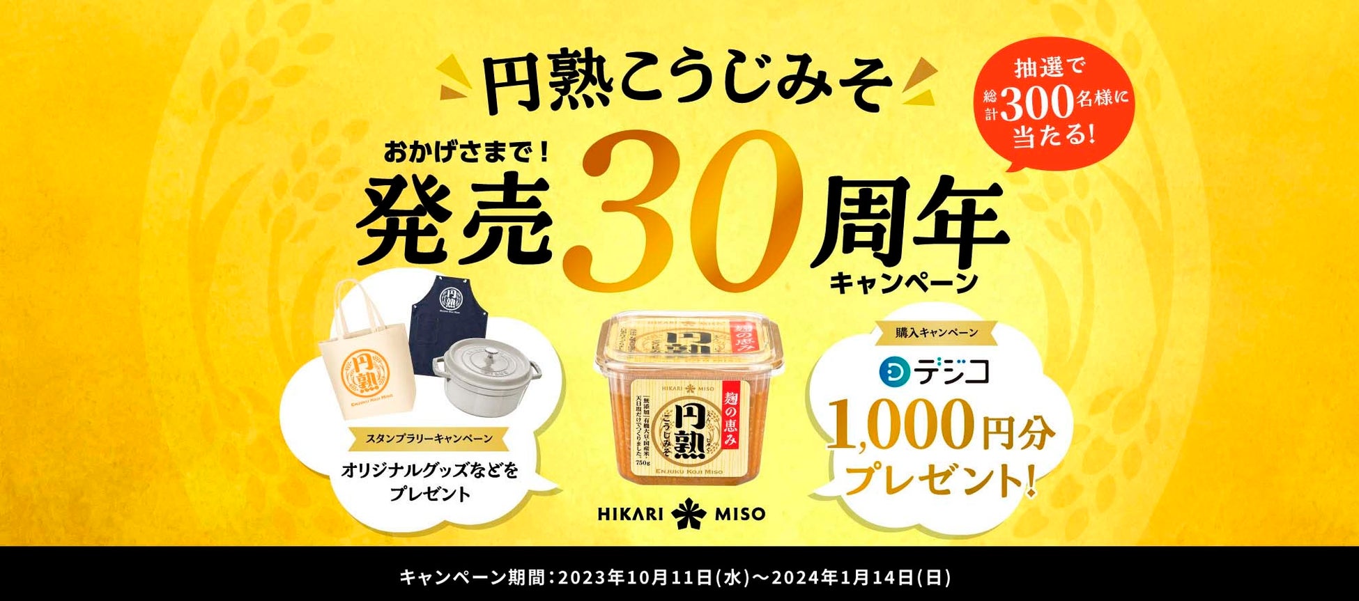 ひかり味噌『円熟こうじみそ』発売30周年記念キャンペーンを開催!〜抽選で総計300名様にプレゼント〜