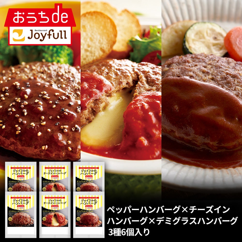 【ジョイフル ペッパーハンバーグ×チーズインハンバーグ×デミグラスハンバーグ3種6個入り】/3,199円(税込)