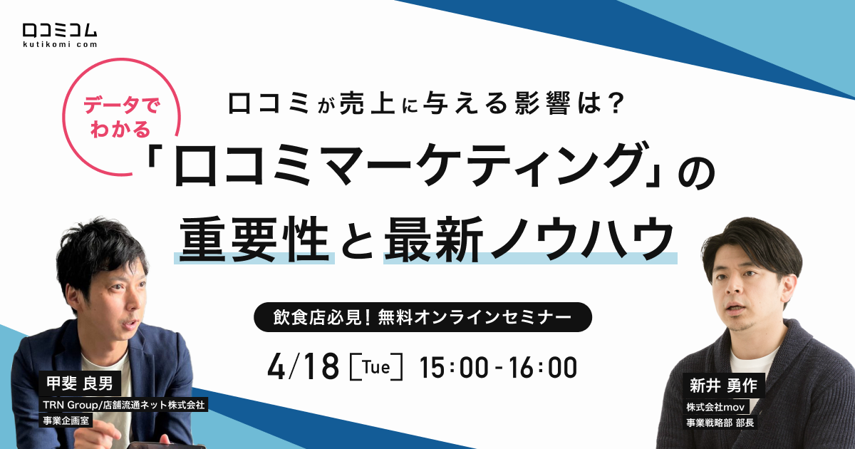口コミが売上に与える影響は?データでわかる「口コミマーケティング」の重要性と最新ノウハウ【飲食店必見セミナー 4/18(火)開催】