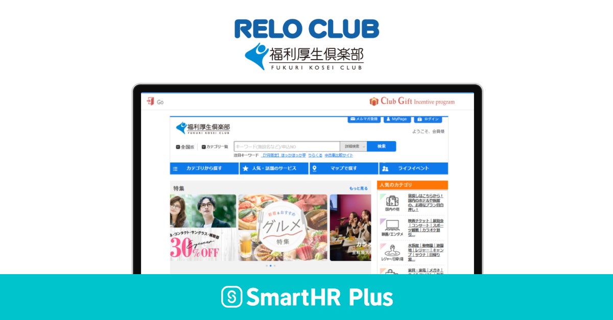 アプリストア「SmartHR Plus」にて「福利厚生倶楽部」を公開~「SmartHR」に蓄積された従業員情報を安全・スムーズにデータ連携~【リロクラブ】