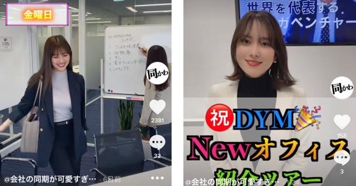WEB事業や人材事業、海外医療事業等を行う株式会社 DYM(読み:ディーワイエム、本社:東京都品川区、代表取締役社長:水谷佑毅)は、自社が運営するTikTokのアカウント『会社の同期が可愛いすぎる(以下、同かわ)』のフォロワー数が2022年6月26日に1万人に到達いたしました。