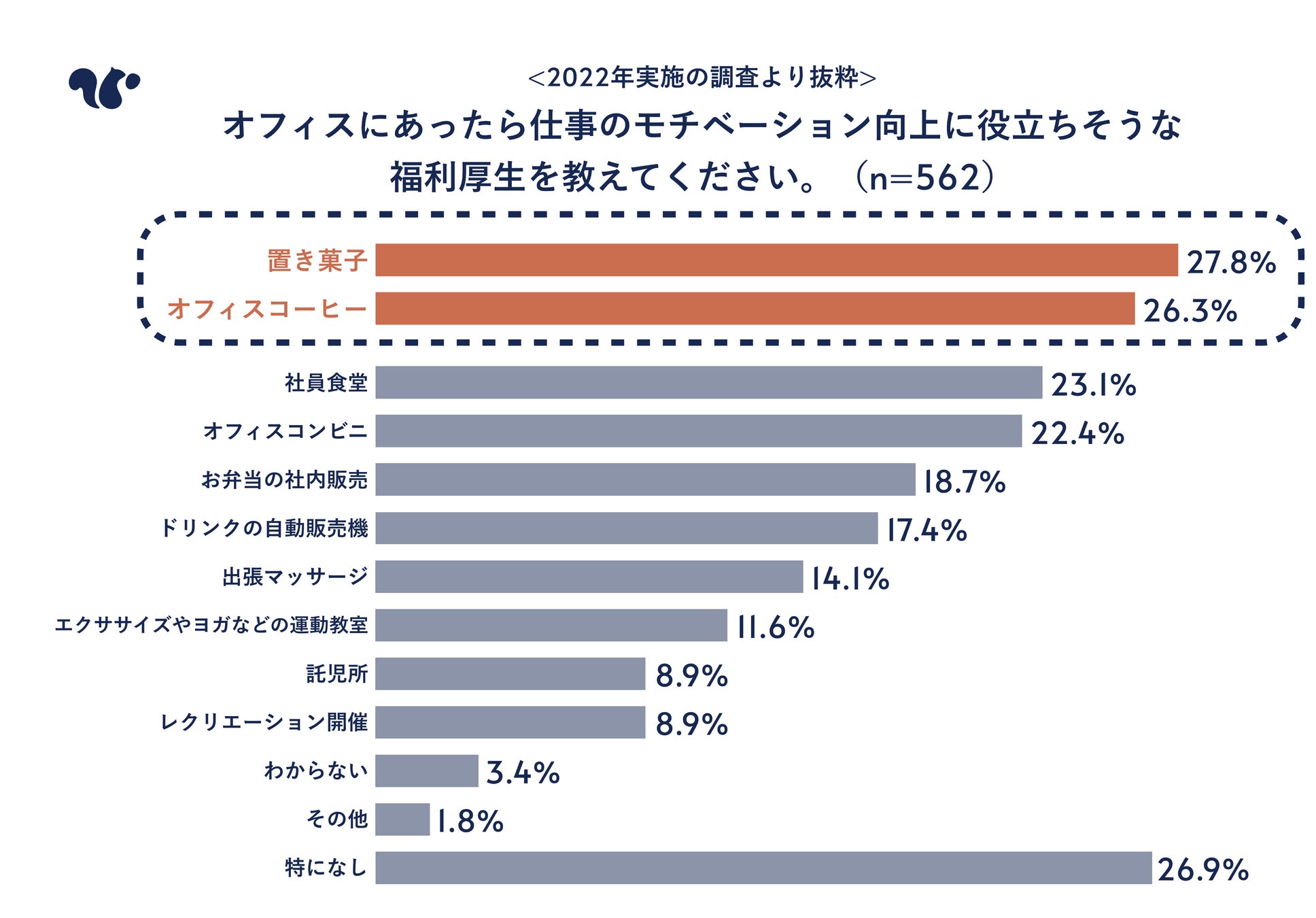 2022年に実施した過去の調査では、オフィスコーヒーのサービスで仕事のモチベーション向上に役立ちそうとの結果が出ております。