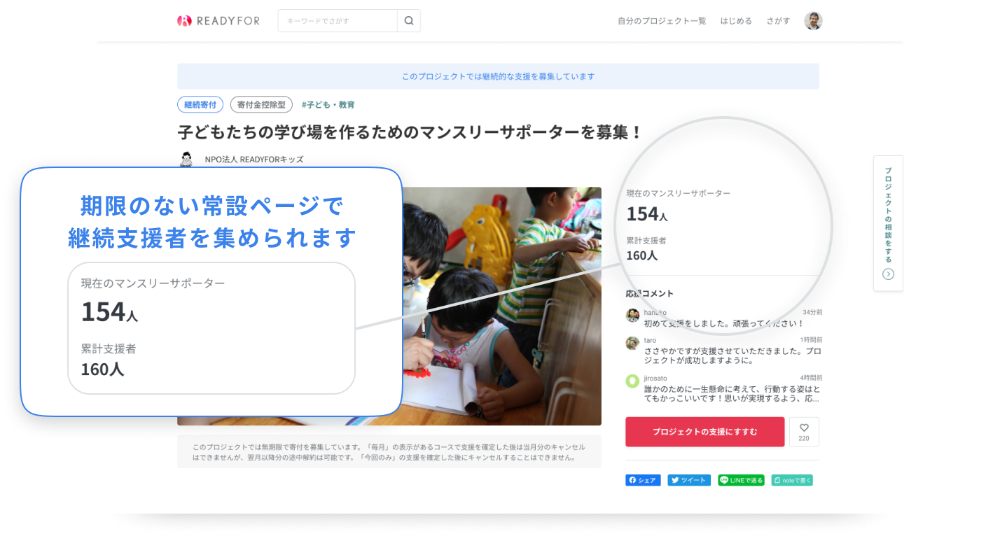 社会的活動団体の継続的な寄付集めをサポートする 「READYFOR 継続寄付」正式版の提供を開始!