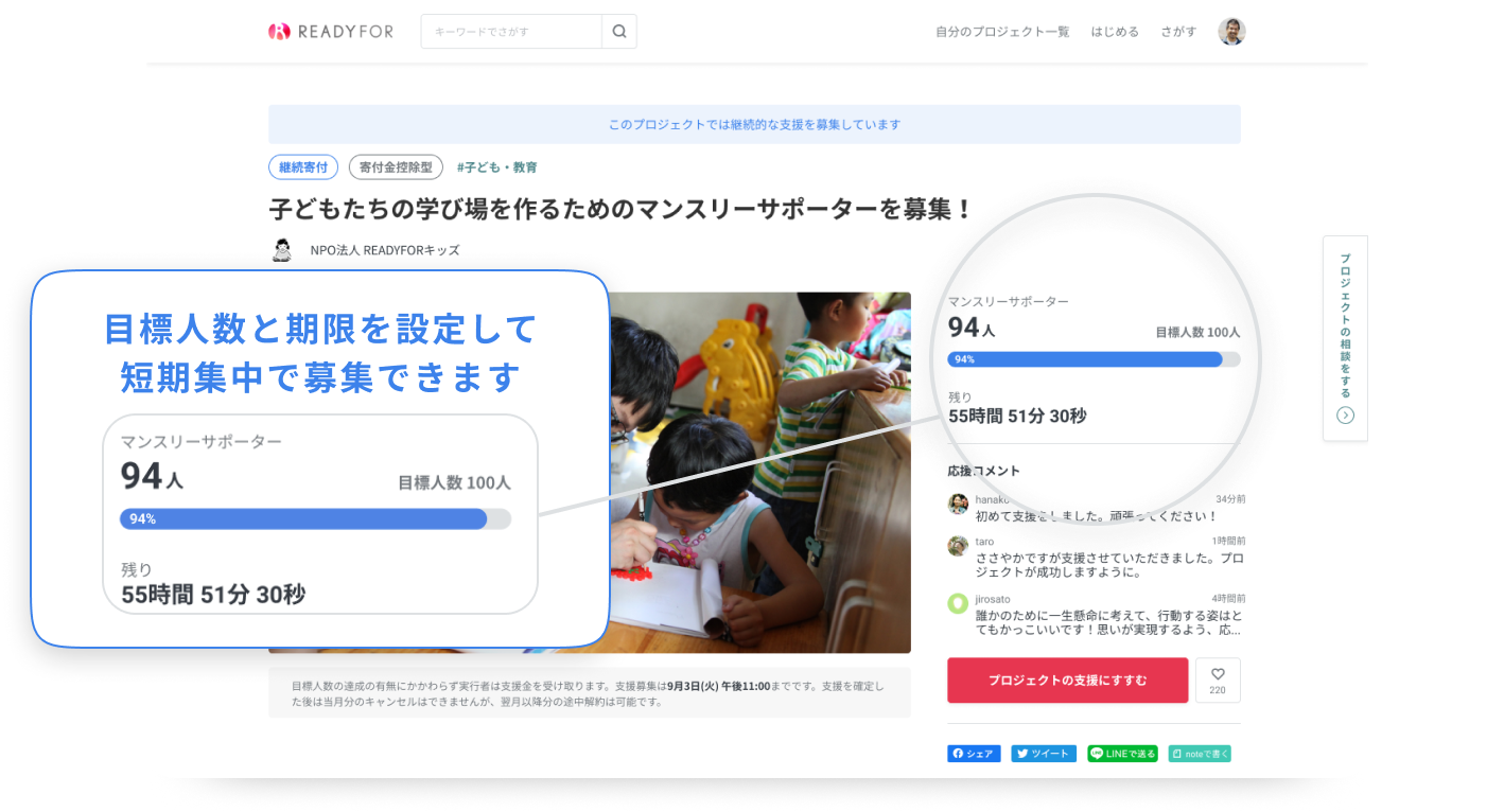 ・「READYFOR 継続寄付」サイト:https://readyfor.jp/fundraising/