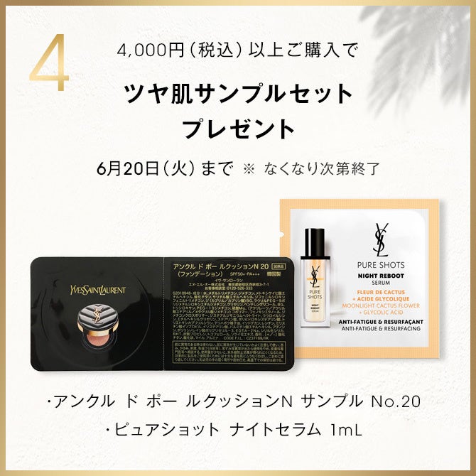 公式オンライン ブティックでご購入のすべてのお客様へ、ツヤ肌サンプルセットをプレゼント。