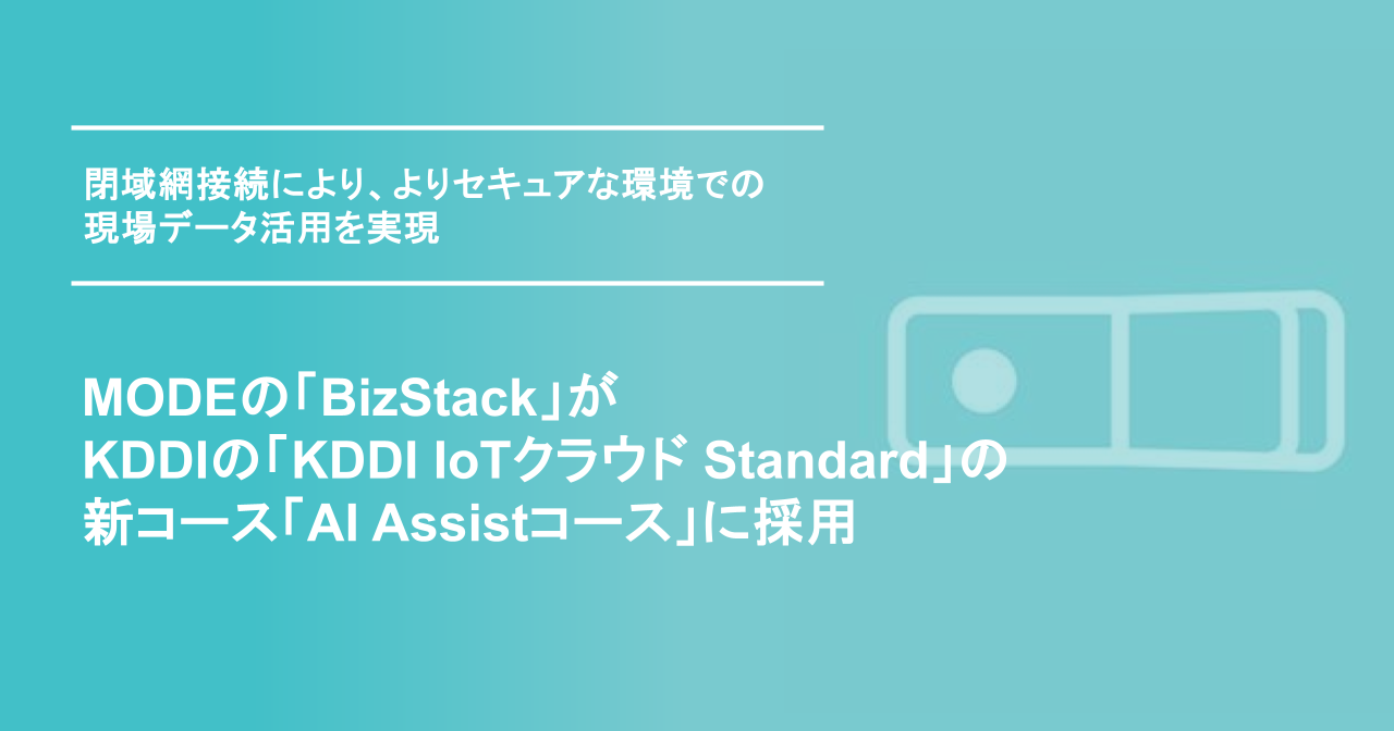 現場データの活用を支援するシリコンバレー発スタートアップMODE, Inc.(本社:米国カリフォルニア州、日本支店:東京都千代田区、CEO:上田 学、以下、MODE)は、KDDI株式会社(本社:東京都港区、代表取締役社長 CEO:松田 浩路、以下、KDDI)が2026年4月16日より提供を開始する「KDDI IoTクラウド Standard AI Assistコース(以下、本コース)」に、MODEのIoTプラットフォーム「BizStack」が採用されたことをお知らせいたします。
