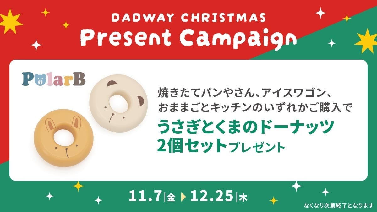 12/25(木)までにPolarBの「焼きたてパンやさん」「アイスワゴン」「おままごとキッチン」のいずれかご購入で「うさぎとくまのドーナッツ2個セット」をプレゼント!