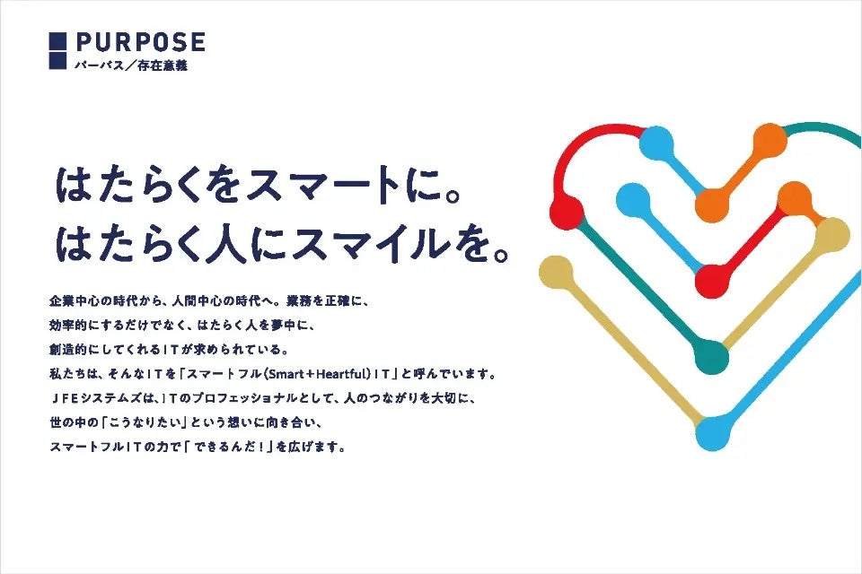 コーポレートブランディング支援を行う株式会社揚羽(東京都中央区 代表取締役社長 湊 剛宏 証券コード:9330)は、JFEシステムズ株式会社(東京都港区 代表取締役社長 大木哲夫)のパーパス策定・浸透プロジェクトを支援しました。設立40周年を機に「人間中心」を核とした企業理念体系を構築し、全社一体感の醸成と組織エンゲージメント向上を実現しています。
