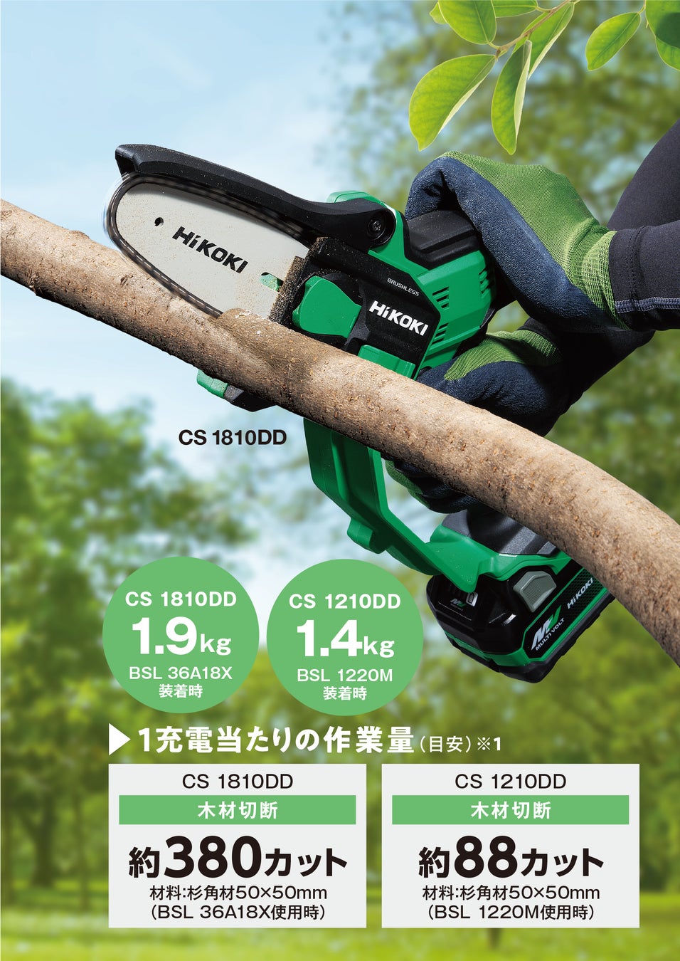 CS 1210DD:https://www.hikoki-powertools.jp/products/gardening/chainsaw/cs1210dd/cs1210dd.html