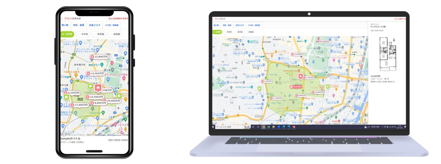 不動産営業支援ツール『オウチーノ くらすマッチ』に、複数物件を一つの地図にまとめて表示する「近隣物件表示」機能を追加!