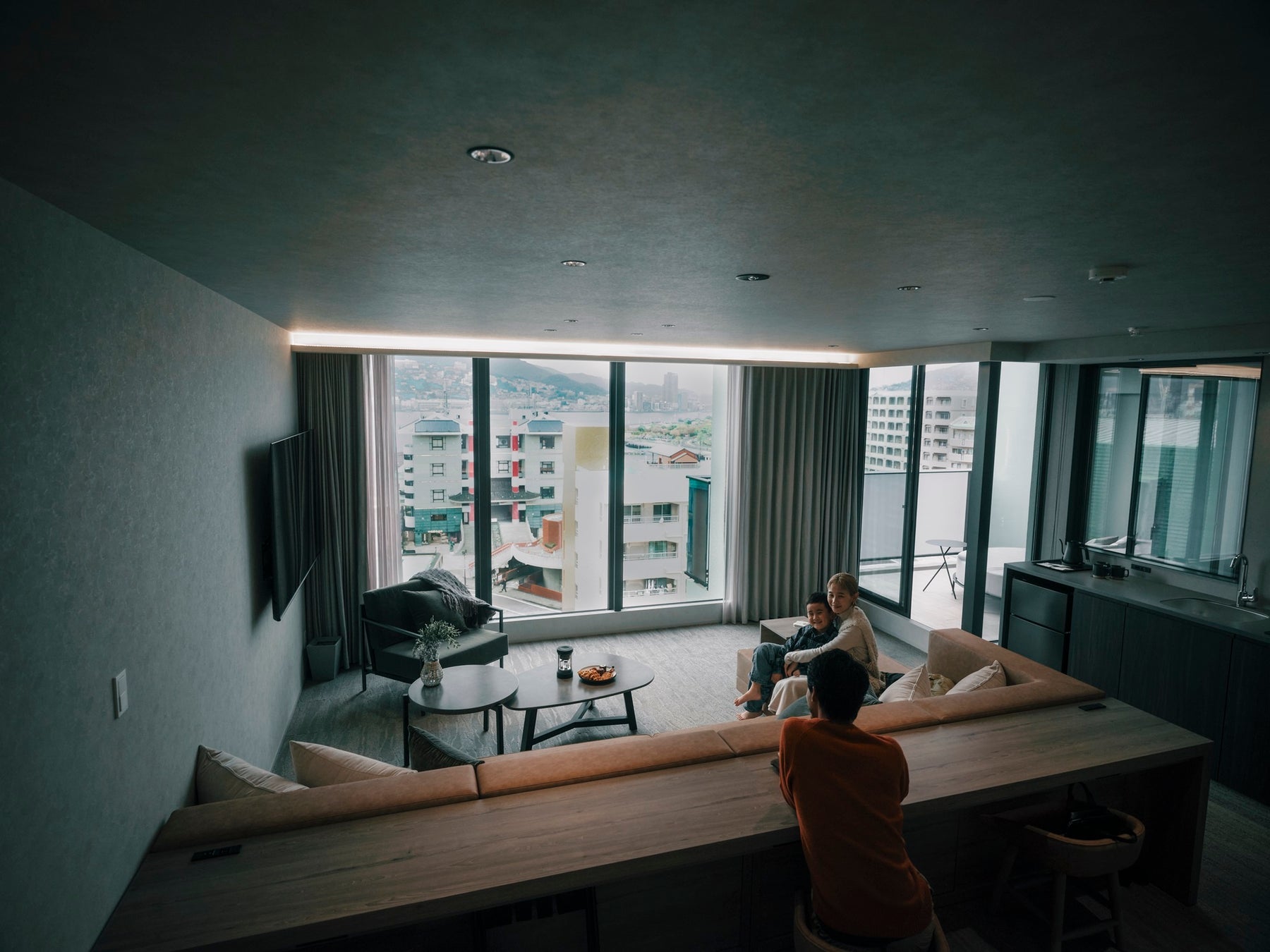 それぞれのホテルは1秒でのチェックイン/アウトを可能にする自動チェックイン機を備え、平均面積35㎡以上の広々とした客室にはキッチンや洗濯機(一部共用ランドリーのホテルあり)、冷蔵庫、オンライン会議も可能な大画面テレビ、カードキー不要の客室ロックを完備し、シモンズ社製のベッドで上質な睡眠のための環境を整備しています。ストレスのない、自宅で過ごすような快適な宿泊環境を実現し、中長期滞在やワーケーションにも適した宿泊体験をご提供します。