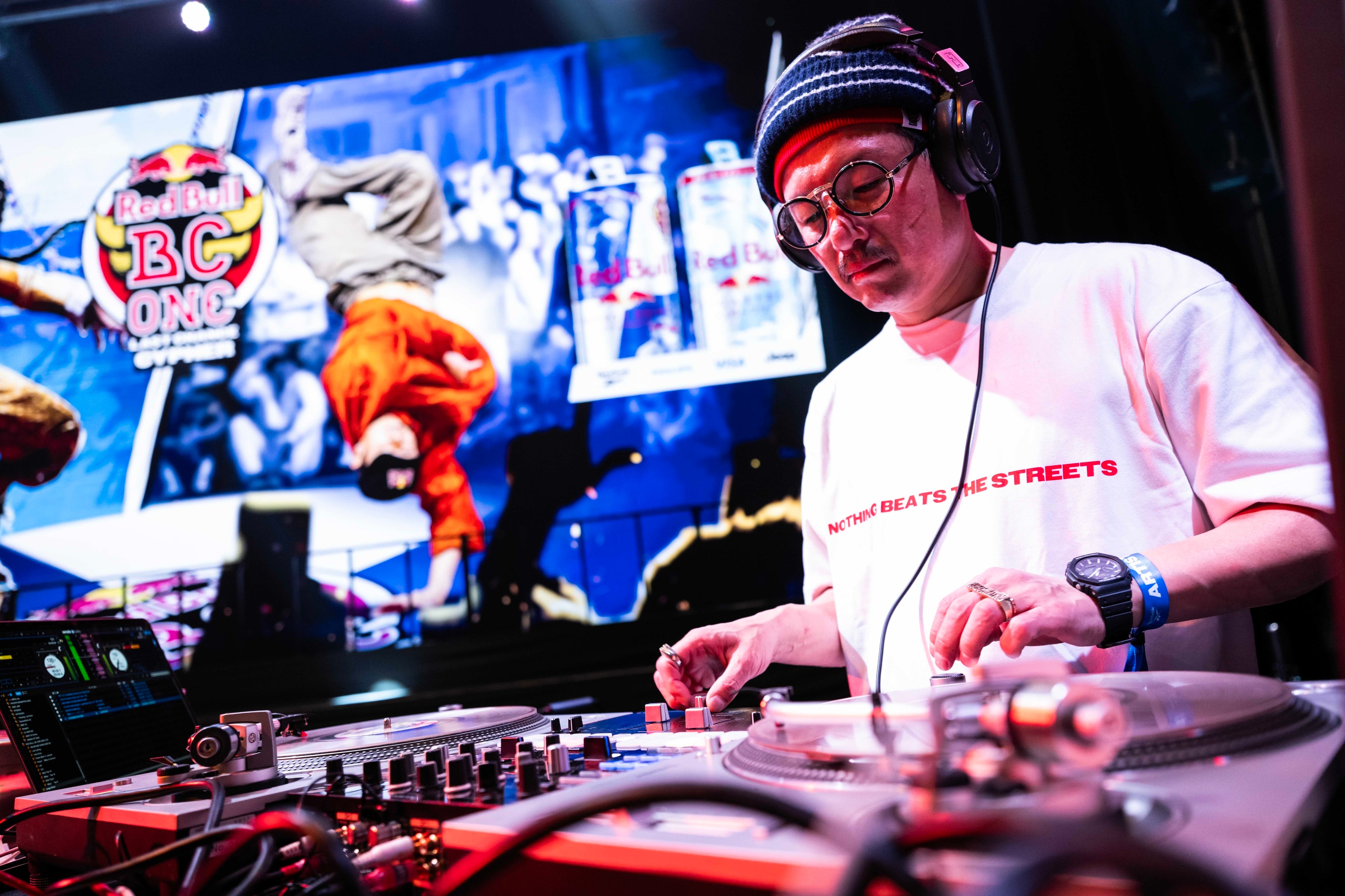 音楽面を担ったのは、長年にわたり日本のヒップホップ/ブレイキンシーンを支えてきた DJ Mar Ski。福岡出身で、原宿のアパレルショップ「DANCERS COLLECTION」オーナーとしても知られ、世界最大級のヒップホップ組織「UNIVERSAL ZULU NATION」のオフィシャルメンバーでもある。2004年の第1回大会から「Red Bull BC One」に関わり続けており、黎明期からサウンド面の発展を支えてきた。ブレイカーの動きを熟知した選曲と、瞬間ごとに空気を変えるグルーヴでフロアを掌握し、まさに“音楽でバトルを導くDJ”として圧倒的な存在感を示した。