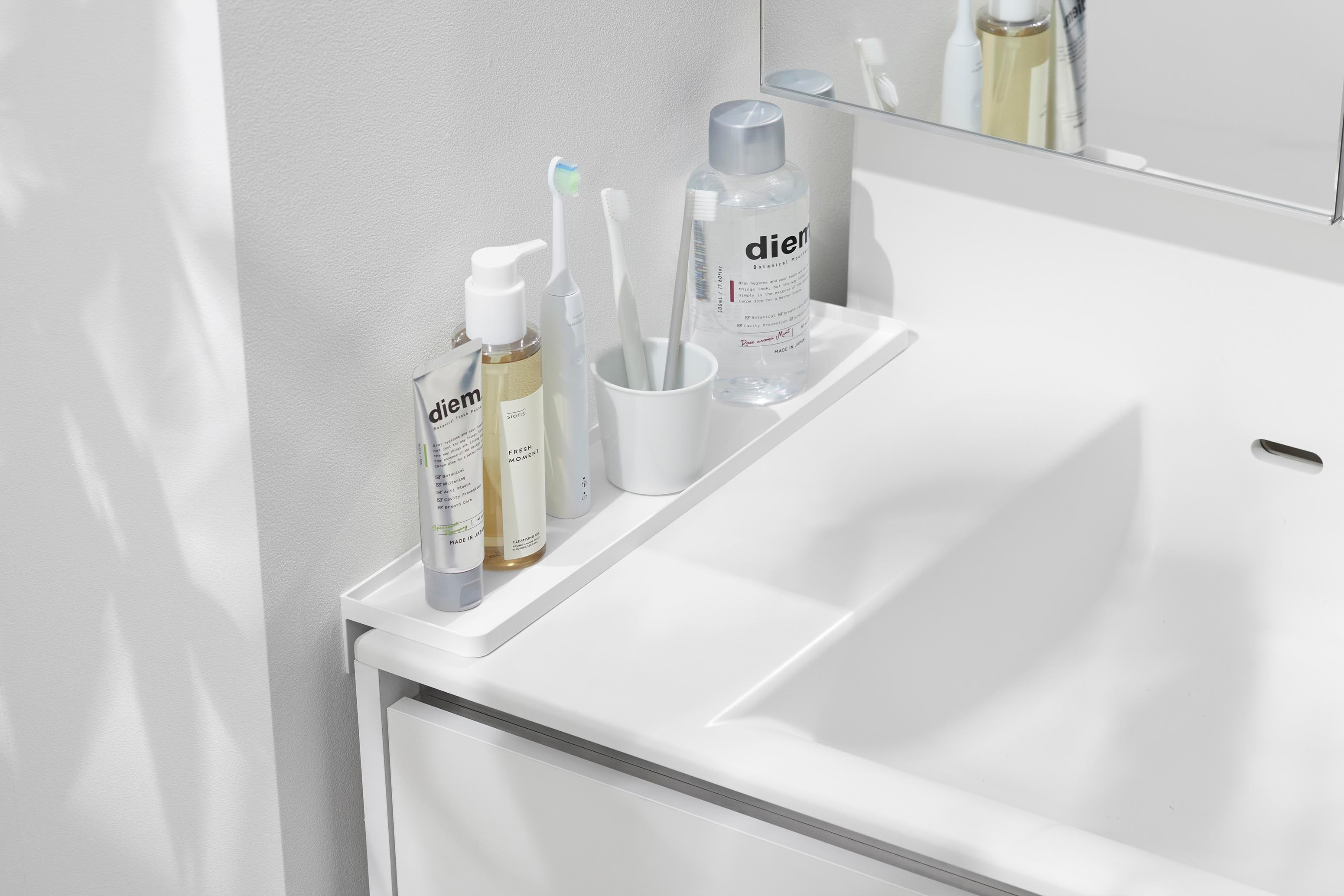 本体を浮かせて収納できるので、置き場所に困らず洗面台まわりもすっきり。