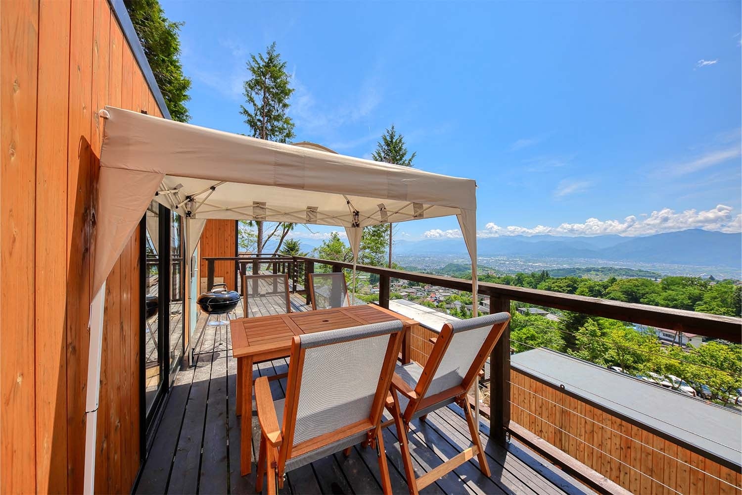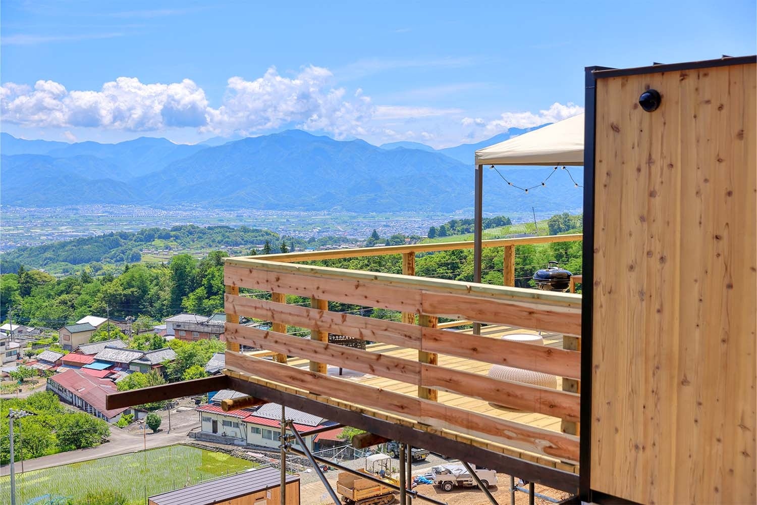 壮⼤な⾃然の中、美しい甲府盆地と富⼠⼭を望む見晴らしの丘に特別な⾮⽇常体験を楽しむアウトドアリゾート「おそとのてらす」がオープンします。