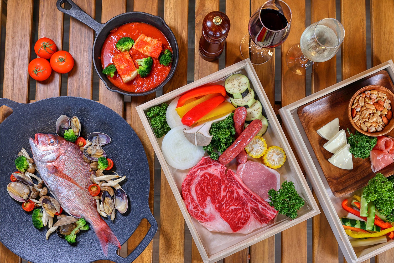 「甲州ワインビーフ」「眠り豚はるな」をグリルでお楽しみください。