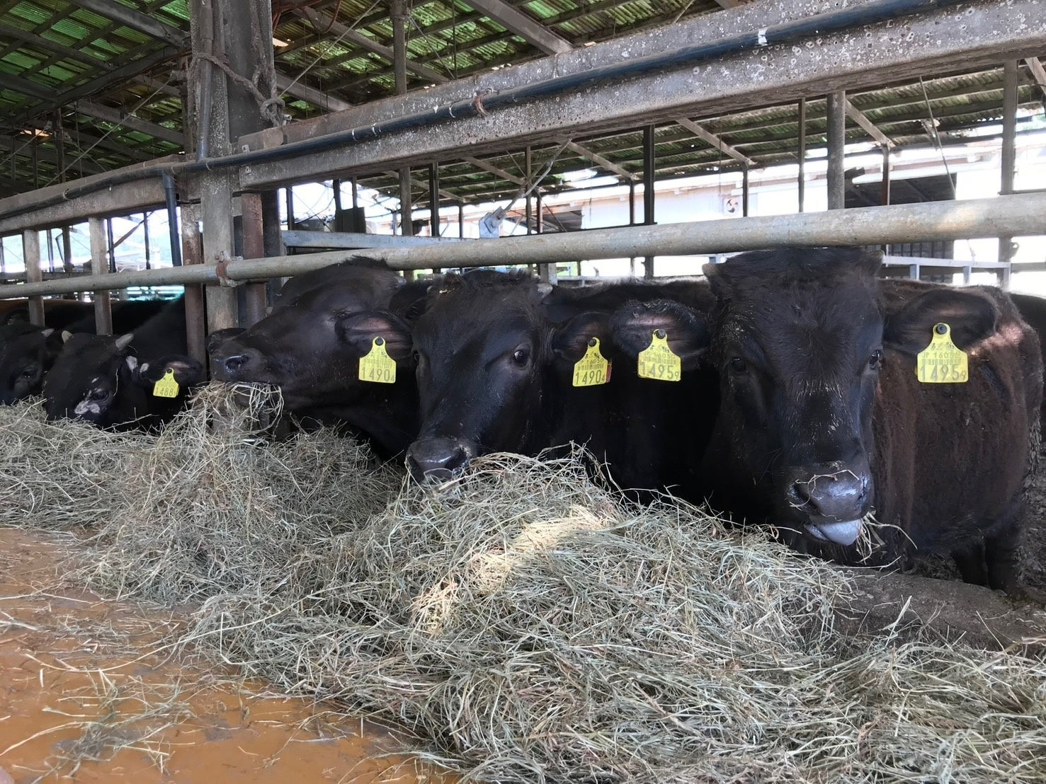 ゆいまーる牧場では、自家配米・吟醸米・酒粕などの独自料と飼料と石垣島の牧草・サトウキビで通常よりも長い期間(約33ヶ月間)をかけて雌牛を丁寧に大切に育てています。