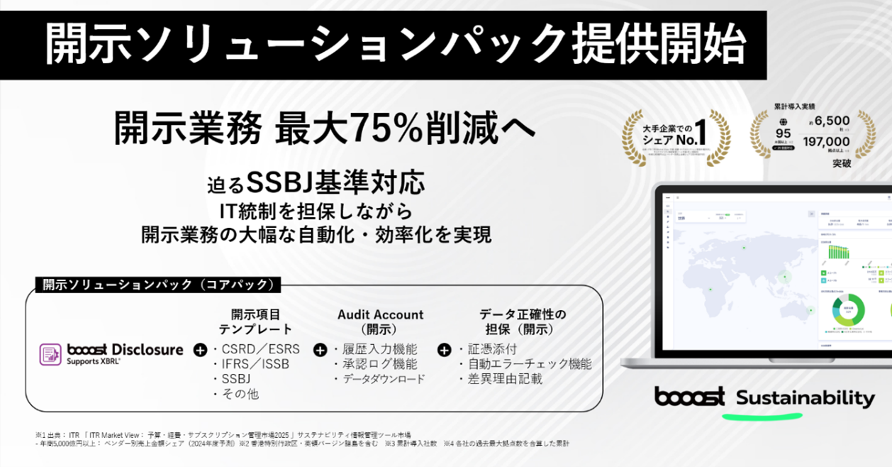 Booost、SSBJ基準対応の開示業務を最大75%*削減可能にする開示ソリューションパックの提供開始