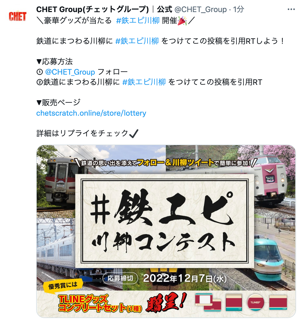 ②鉄道にまつわる川柳にハッシュタグ「#鉄エピ川柳」をつけて下記ツイートを引用リツイート