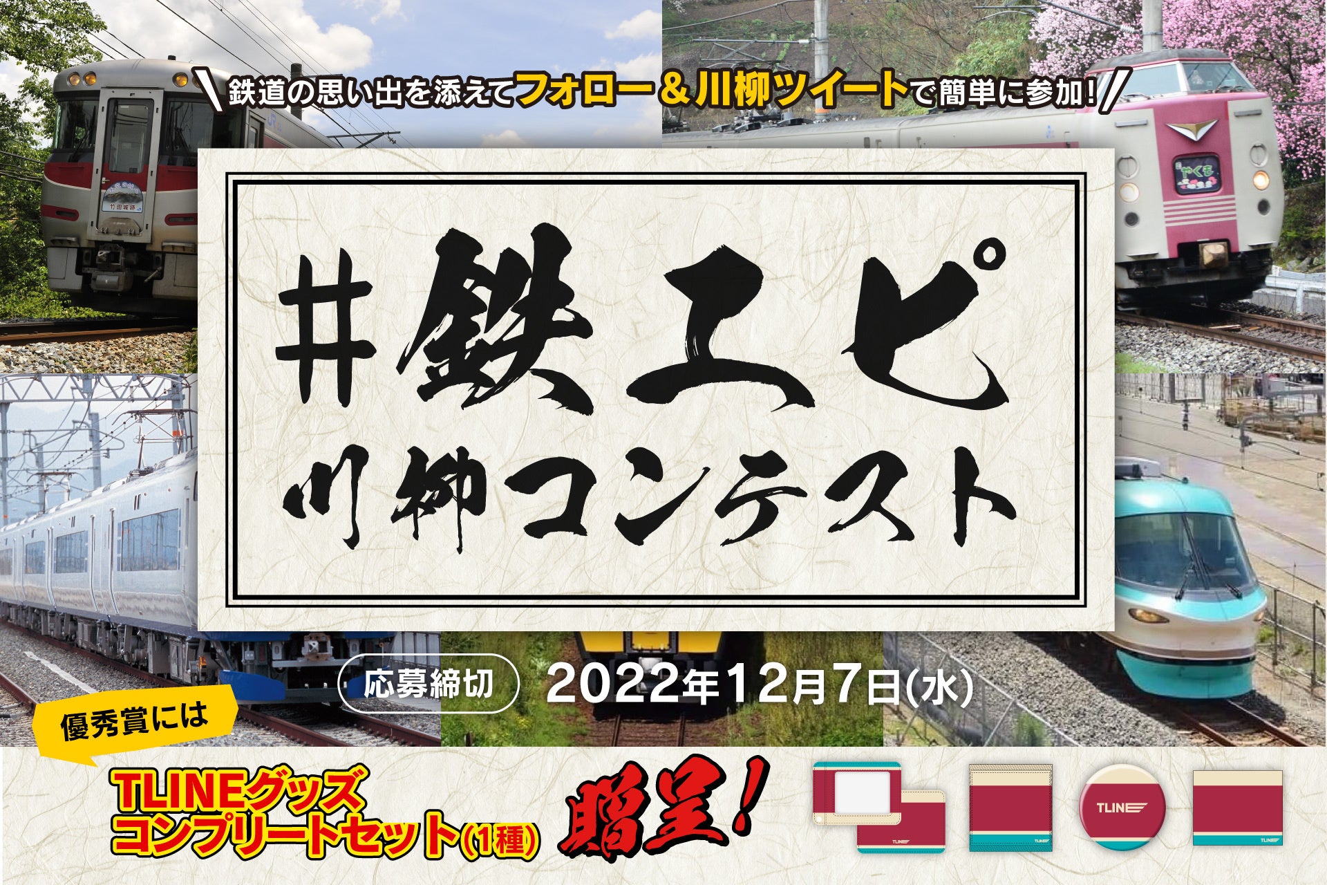 ~鉄道の思い出を川柳にしてTwitterに投稿しよう~鉄道車両のカラーリングをモチーフにしたボーダー柄のデザイン「TLINE」オンラインくじ