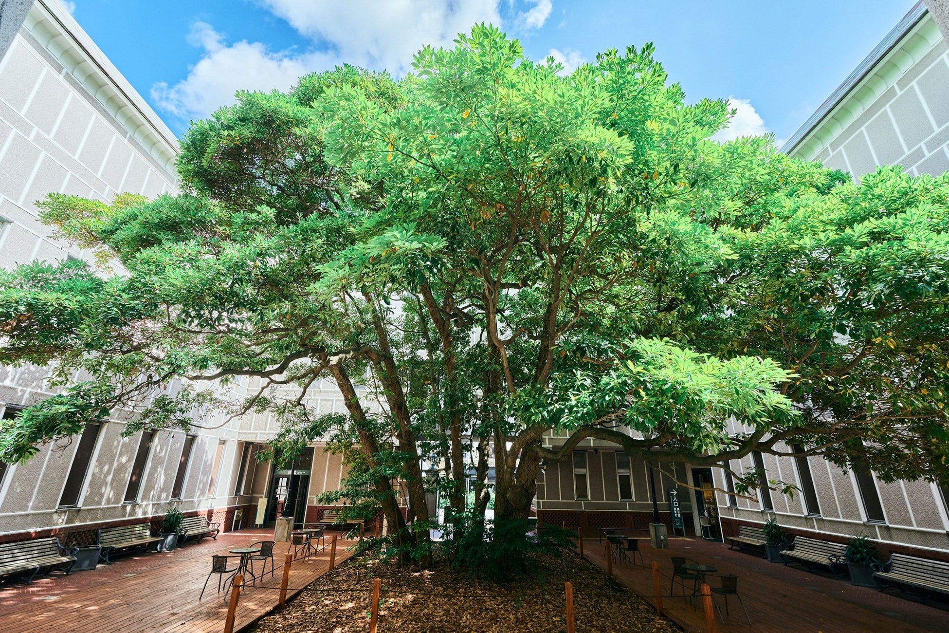 たまくすの木の土壌改良や枝葉の剪定といった日常メンテナンスや今回のウッドデッキの整備は、横浜開港資料館を運営する公益財団法人横浜市ふるさと歴史財団と協定を締結している一般社団法人かながわ樹木医会に委託しています。会員樹木医209名を擁する当団体はたまくすの木を守り未来へつなげるパートナーです。