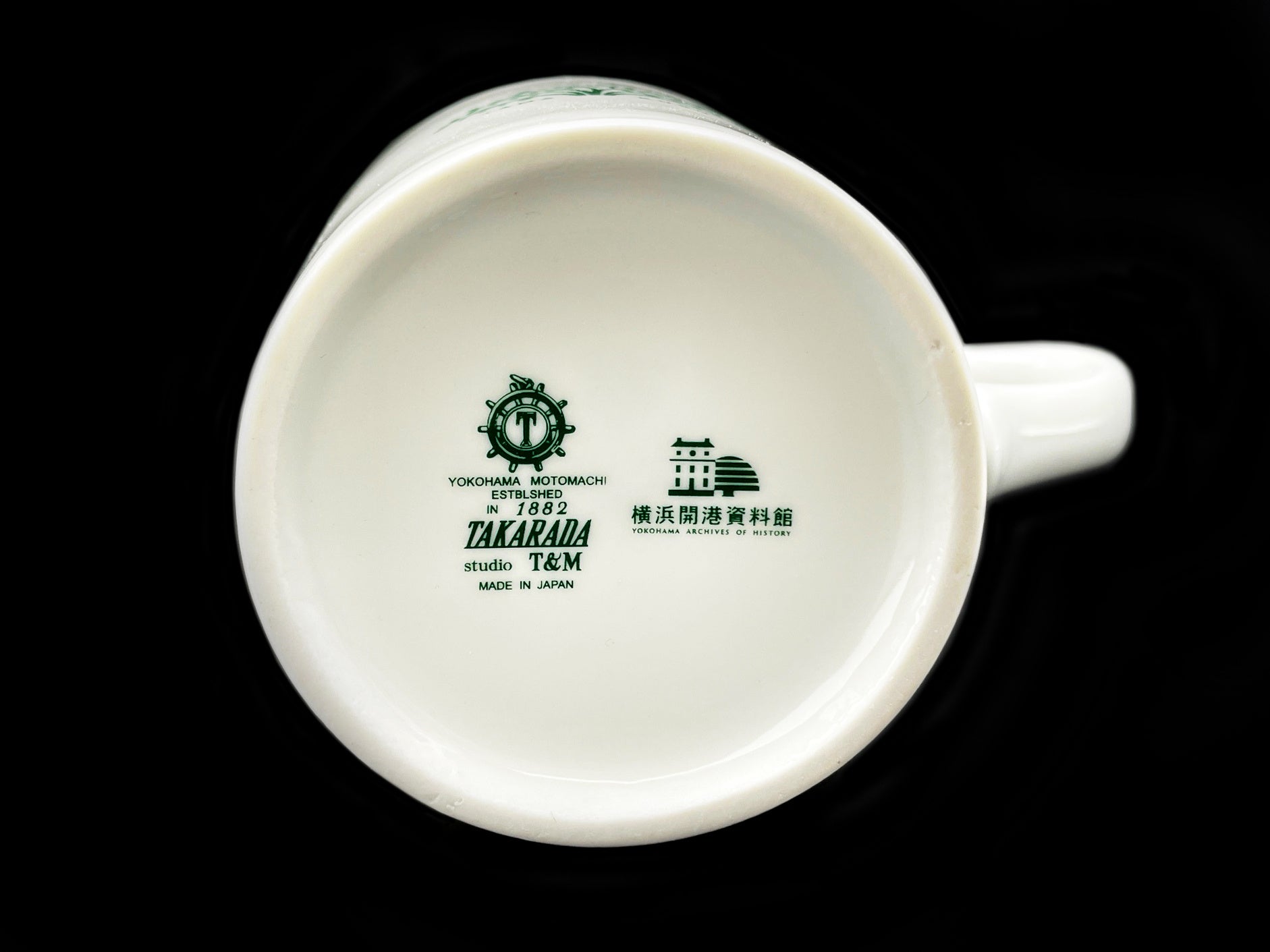 マグカップは横浜元町テーブルウェア専門店「タカラダ」に製作を依頼し、底面にはタカラダのロゴマークと横浜開港資料館のロゴをあしらいました。