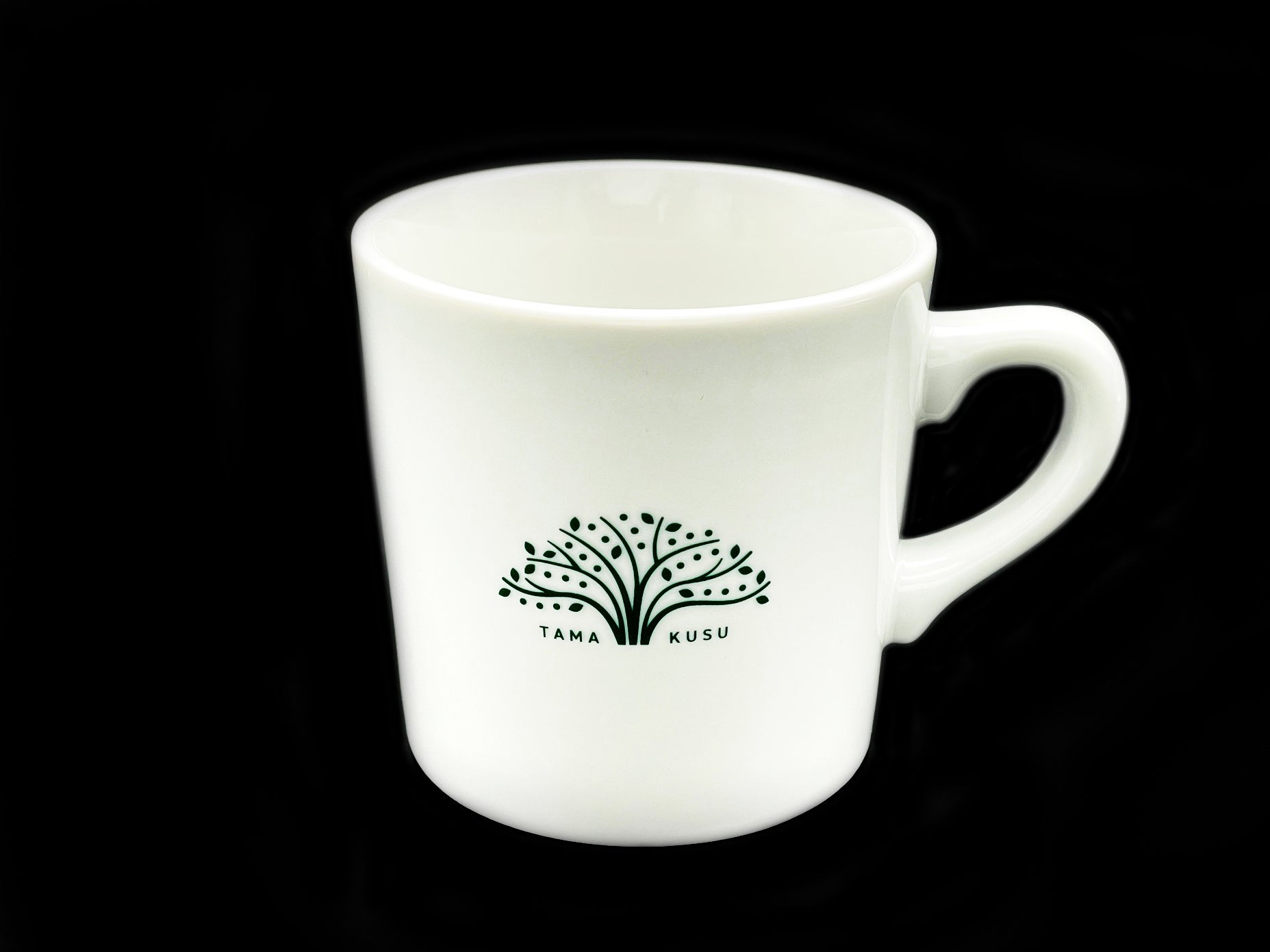 陶器の白地にグリーンのたまくすの木を配置。シンプルで使いやすいデザインになりました。