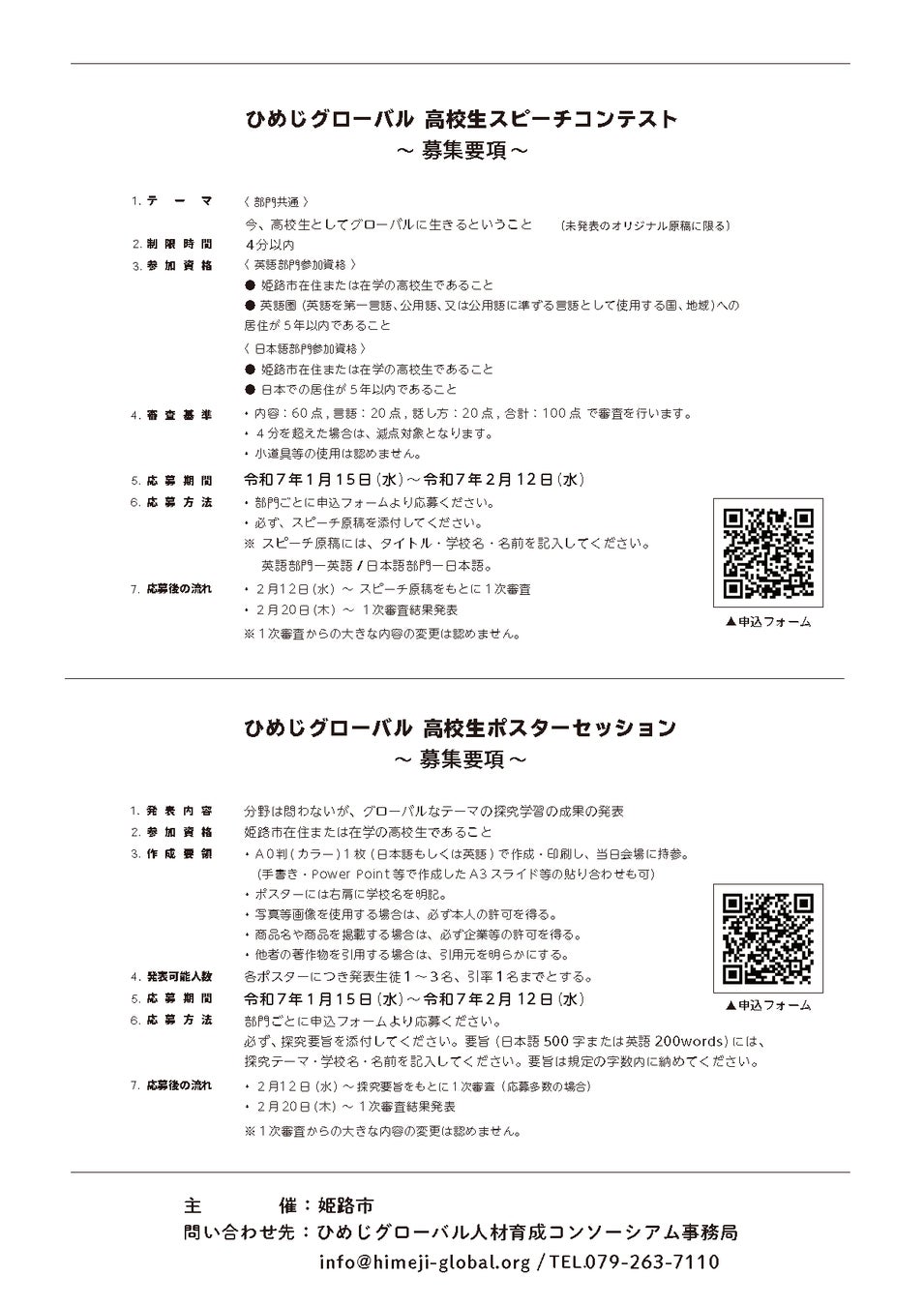 高校生スピーチコンテスト及び高校生ポスターセッションについては、2月12日まで以下の申込フォームから出場者を募集しています。