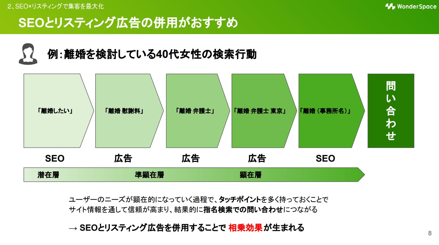 弊社は、Webコンサルティングと広告運用の専門サービスを提供し、大手法律事務所を含む多くの士業事務所からご依頼いただいており、士業分野における広告運用において国内トップクラスの実績を誇っております。