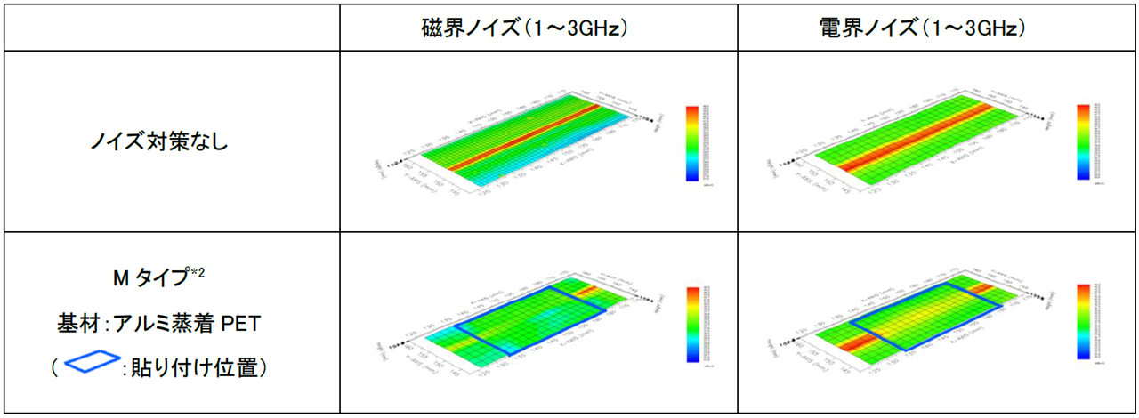 *1 マイクロストリップラインから放射されるノイズの抑制効果:ペリテック社製 EMIテスタ測定