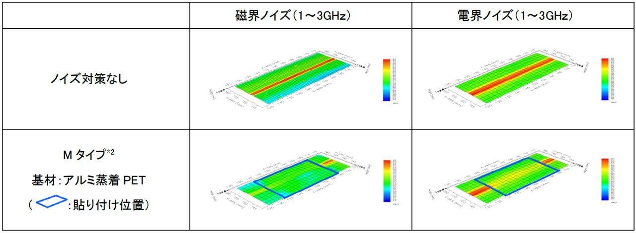 「Mタイプ」は、磁性粉分散技術とウェットコーティング技術を活かした、数百メガヘルツ~数十ギガヘルツの高周波帯域に対応した磁気ノイズ抑制薄膜フィルムです。パソコンやスマートフォンなどの電子機器や医療機器、通信機器、自動車の電子システムなどに使用されるケーブル、IC、回路基板、コネクタなどのノイズ発生源周辺で生じるノイズの抑制に貢献します。