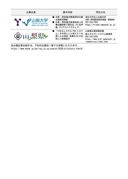山梨県(知事:長崎幸太郎)は、2024年2月28日(水)から3月1日(金)まで、東京ビッグサイトで開催される世界最大規模の水素・燃料電池の展示会「第21回[国際]水素・燃料電池展 ~H2&FC EXPO 春~」に山梨県ブースを出展します。