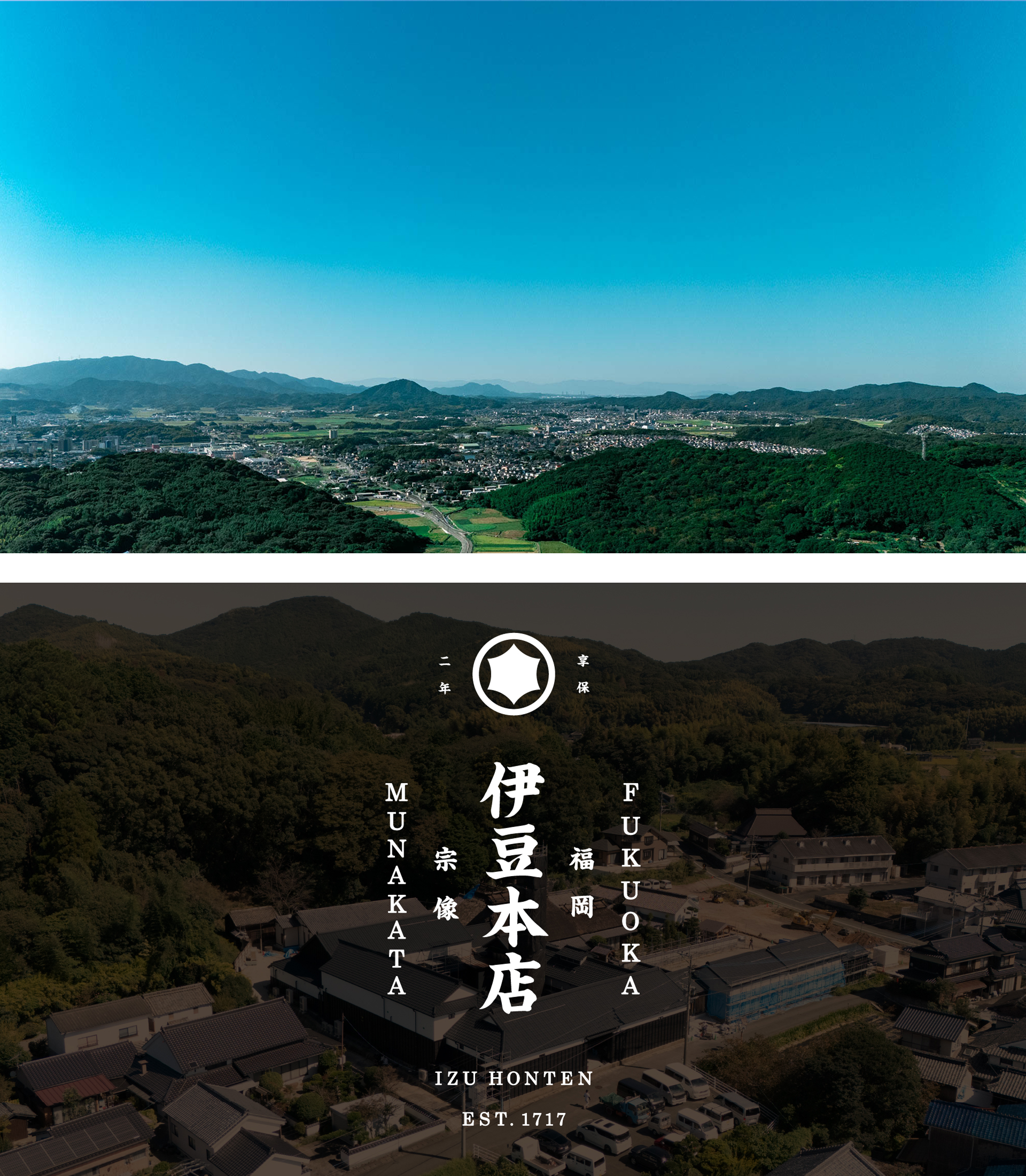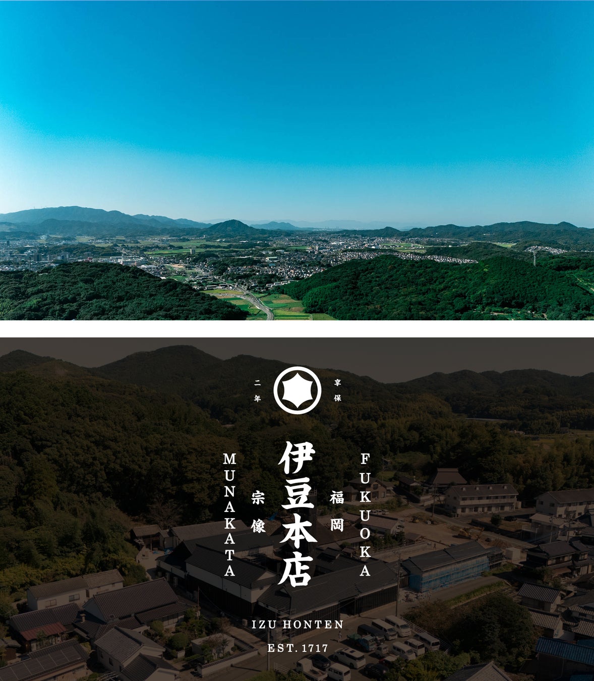 伊豆本店は、1717年に創業し、宗像の地で300年以上にわたり酒造りを続けてきた老舗酒蔵です。歴史的な茅葺きの建屋や煉瓦造りの煙突を残しながら、今回の改築では、“魅せる酒蔵”をコンセプトに「直売所」 「醸造蔵」「酒蔵BAR」「甘味」「歴史展示」の5つの体験エリアを新設しました。酒造りの工程を間近で見学できる醸造蔵、日本酒とそのペアリングを楽しめる酒蔵BAR、「宗像」や「亀の尾」等を購入できる直売所、酒づくりの道具などを展示した歴史展示、酒粕を使った宗像 花酒(はなさか)まんじゅうや宗像ジェラートをテイクアウトで提供する甘味処など、日本酒文化と地域の魅力を五感で味わえる施設としてリニューアルしました。