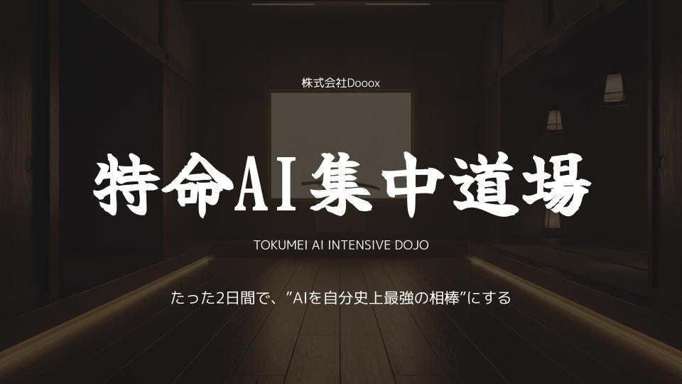 『緊急ではないけれど、重要な課題』について、企業経営者に伴走する特命社長室を展開する株式会社Dooox(本社:東京都品川区、代表:久保寺亮介/以下「当社」)は、2026年4月より、企業の経営者・経営層を対象とした短期凝縮型AI研修プログラム「特命AI集中道場」を開始いたします 。