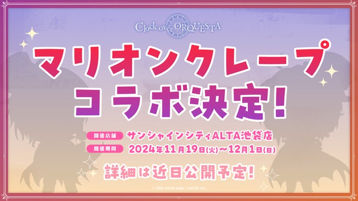 株式会社viviON (所在地:東京都千代田区、代表取締役:明石耕作) は、SNS連動型キャラクターソングプロジェクト『Clock over ORQUESTA(クロック・オーバー・オルケスタ)』(通称:クロケスタ)のポップアップストアを、11月2日(土)から11月24日(日)の期間中「有楽町マルイ」において開催する運びとなりました。池袋、秋葉原で予定しているコラボレーション企画とあわせてご案内します。