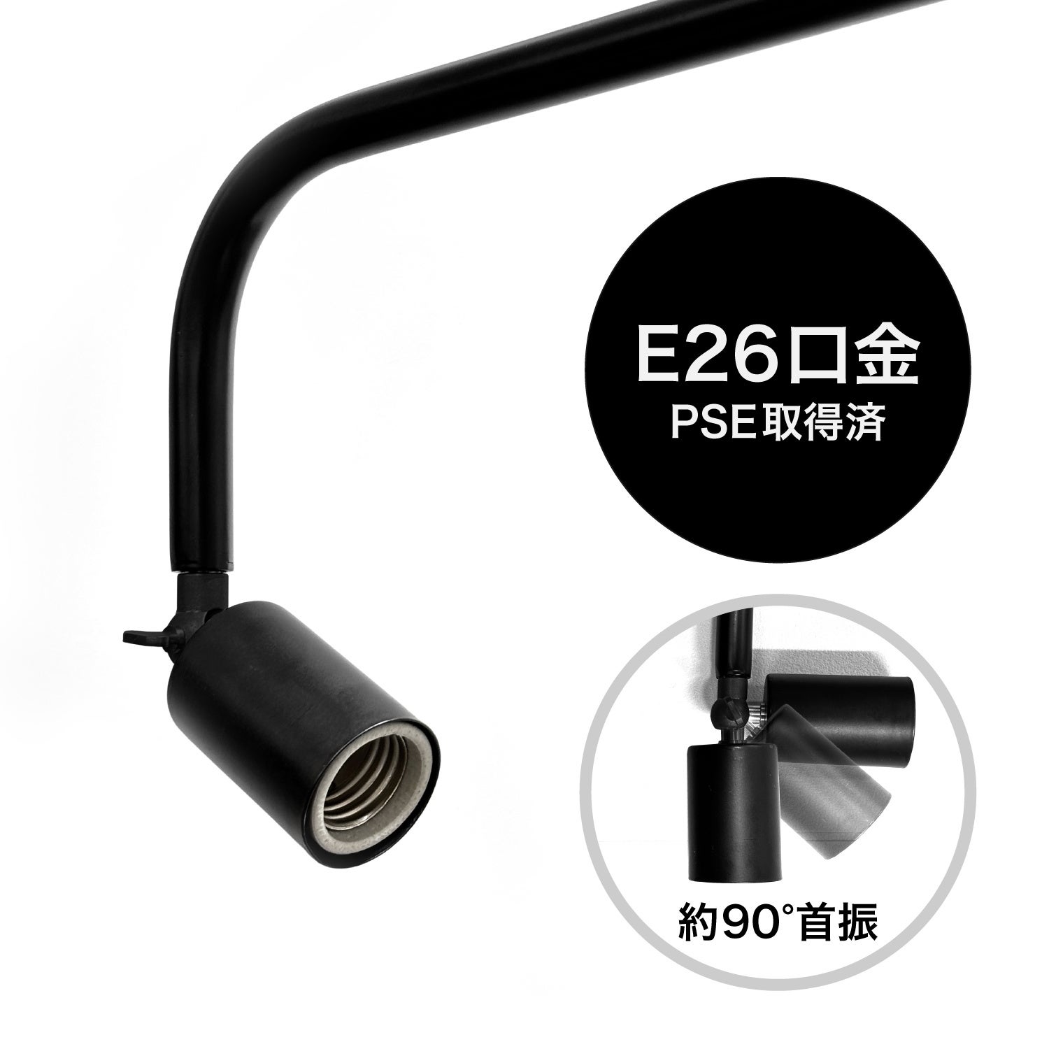 E26口金対応の電気ソケットが1つ付属。安心のPSE(電気用品安全法)認証済み。約90°の首振り機能を搭載し、植物とライトの距離や角度を適切に調節可能です。配線整理に便利なケーブルバンドも5つ付属し、複雑なDIY不要で簡単に最適な育成環境を整備できます。