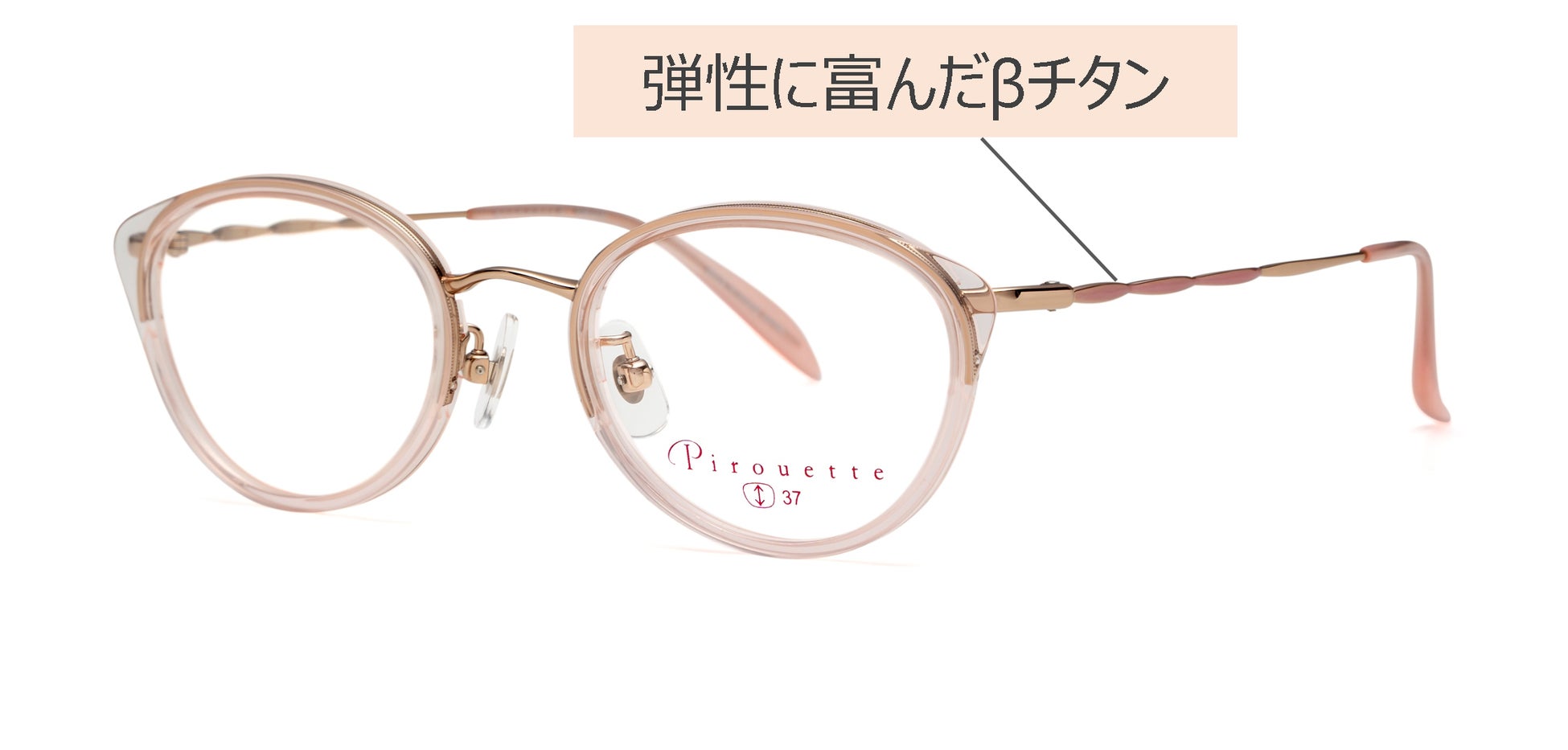 メガネの聖地・鯖江の職人が、一本一本丁寧に仕上げる『Pirouette』は、年齢と共に変化する女性の悩みを自然にカバー出来るデザインが特徴です。