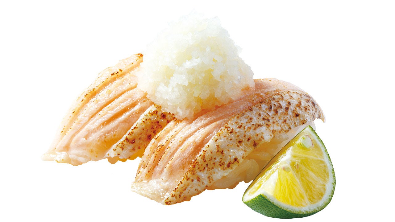 今回のフェアでは、びんちょうまぐろの中で最も脂がのった希少部位“はらも”を使用した「大切り大とろびんちょう100円(税込110円)」に加え、旬を迎える「愛媛県宇和島産活〆しまあじ」やさっぱりとした大根おろしと徳島県産すだちを添えた「炙りとろサーモン(すだちおろし)」など、夏にぴったりな商品を多数ご用意しています。