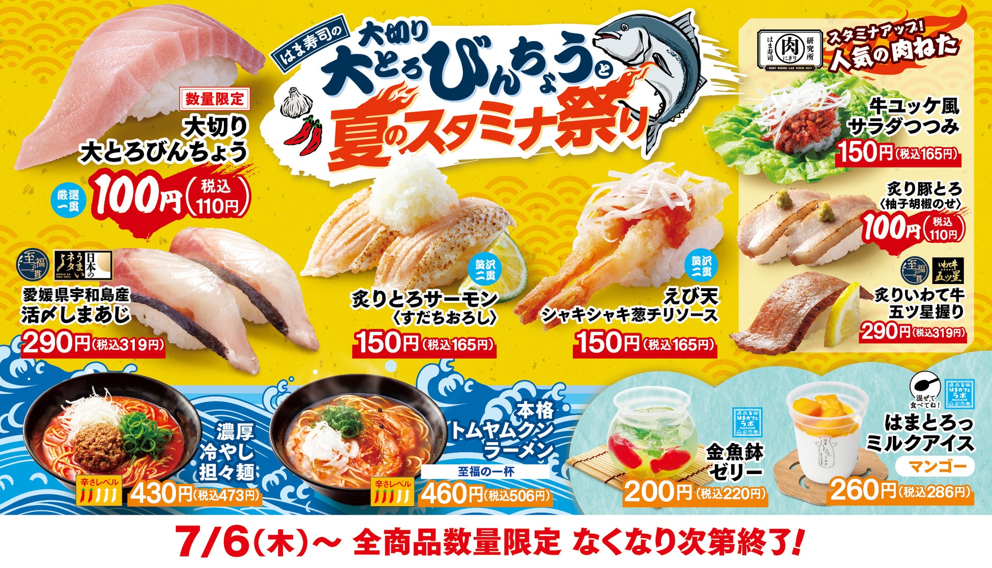 【はま寿司】希少部位「大切り大とろびんちょう」がなんと110円!暑い夏に精がつくスタミナ商品も多数登場!「はま寿司の大切り大とろびんちょうと夏のスタミナ祭り」開催!