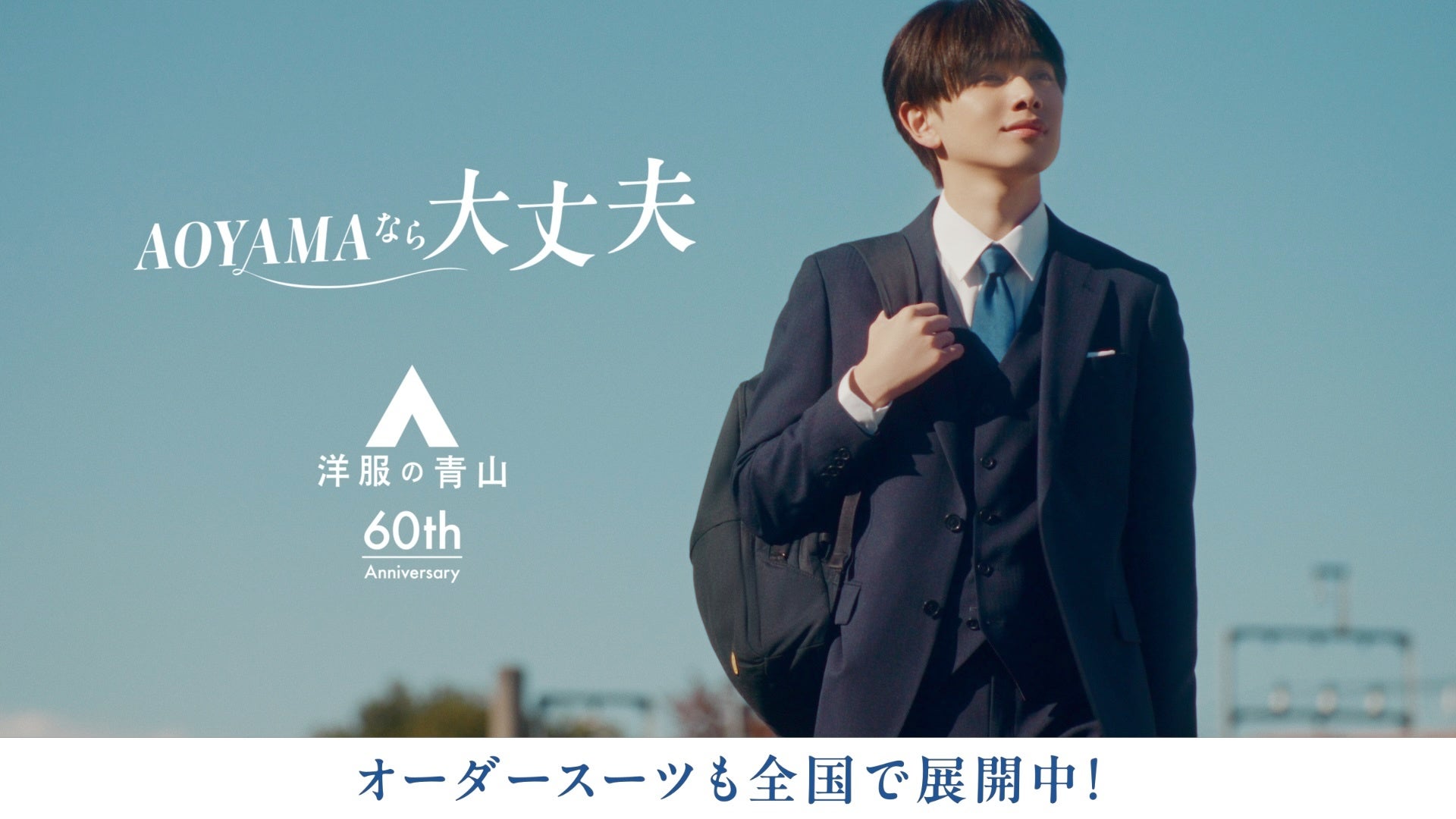 青山商事株式会社(本社:広島県福山市/代表取締役社長:青山理(おさむ))は、4 月から新入学生・新社会人となるフレッシャーズに向けた「洋服の青山」の新CM『AOYAMAなら大丈夫篇』を1 月21 日(火)から全国で放送します。新CMキャラクターには、日本だけでなくアメリカのオーディション番組にも出演した人気お笑い芸人チョコレートプラネットさんと、俳優・アーティストとして幅広く活躍中の宮世琉弥さんをCMキャラクターとして起用いたします。