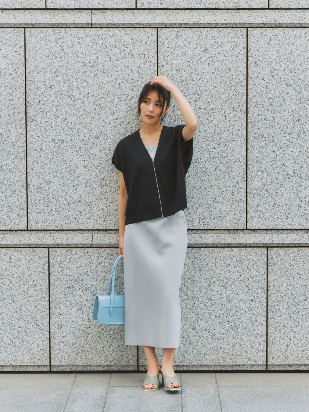 Gilet×Skirt Set_¥26,400 Tank Top_¥10,780 Pierced Earrings_¥5,280 Bag_¥13,200