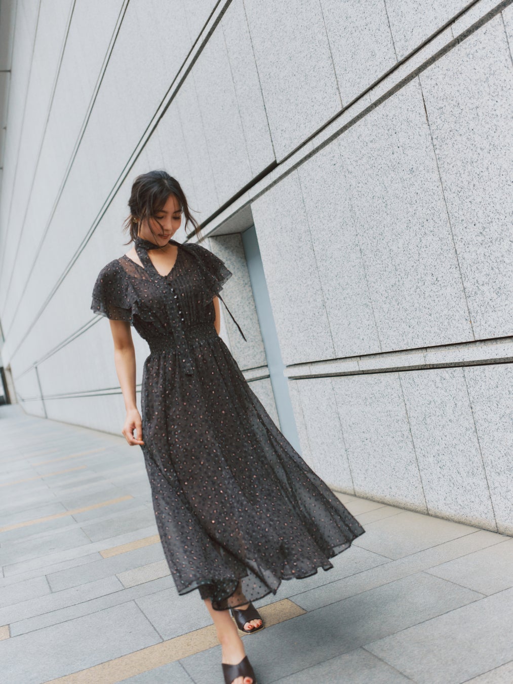 秋まで楽しめるレオパードドレスはティアードスリーブで可愛げをひとさじ