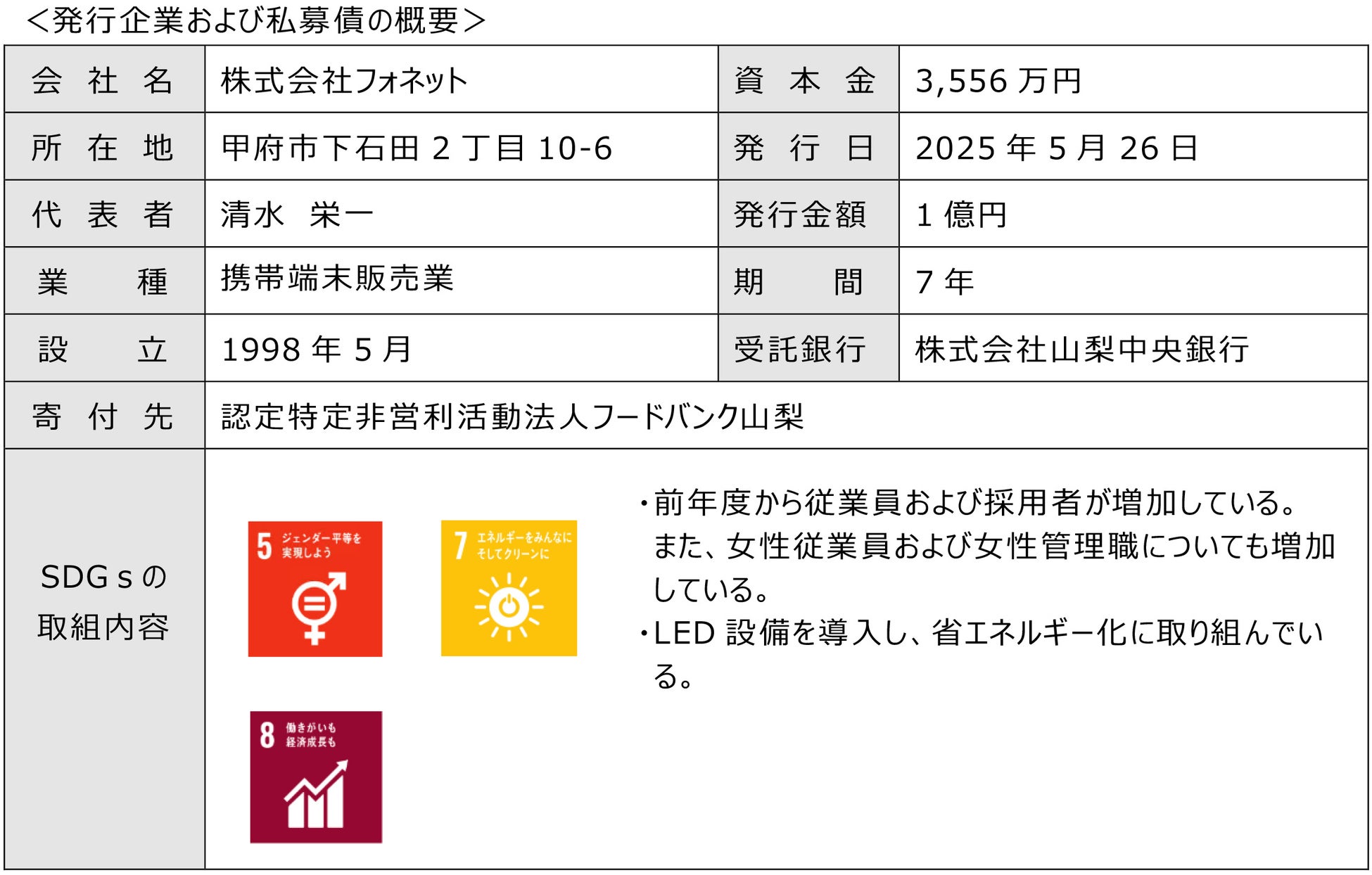 株式会社山梨中央銀行(頭取 古屋 賀章)は、寄付オプション付私募債「山梨中銀SDGs私募債」1件/1億円を受託しました。