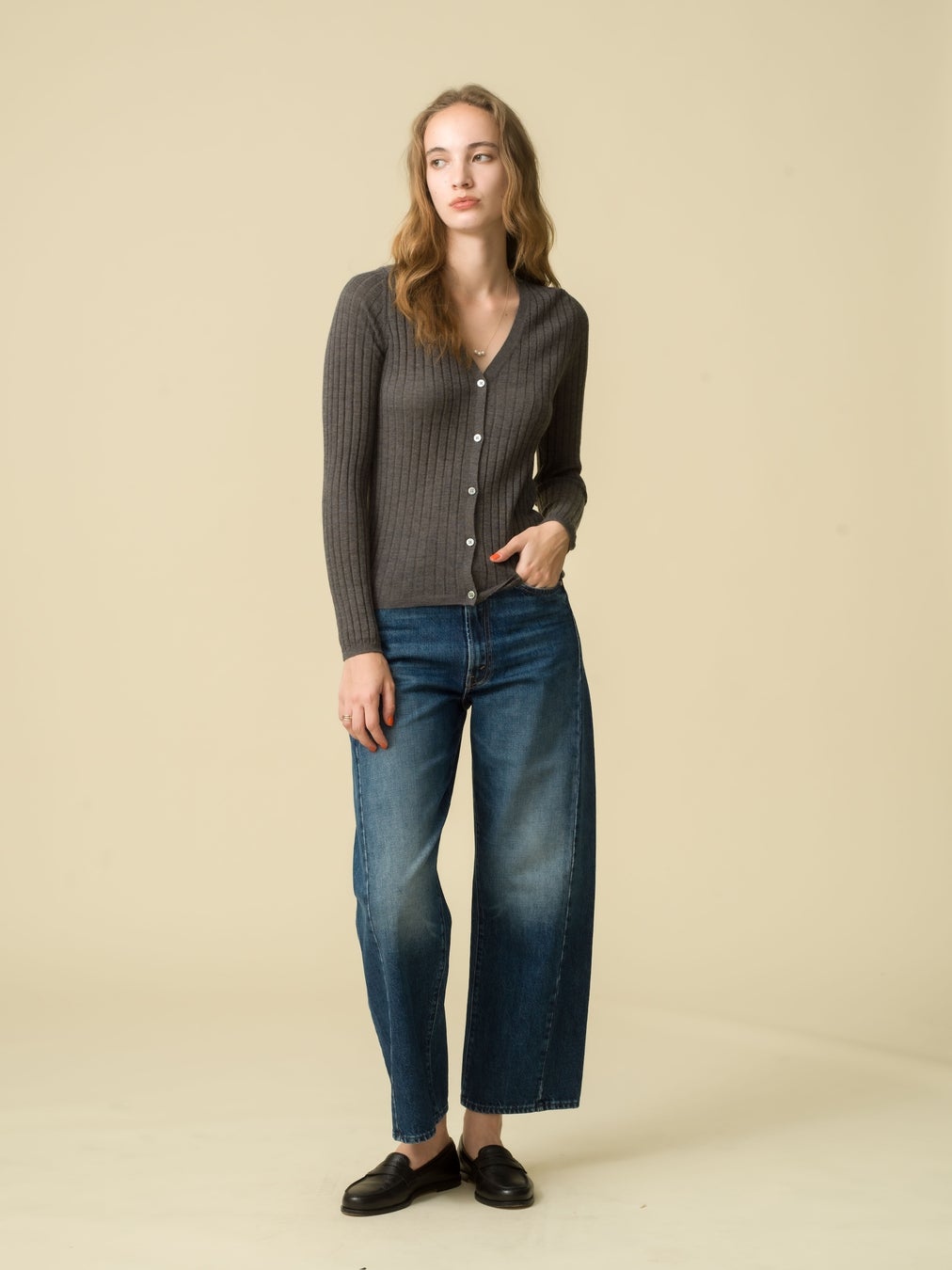 過渡的な季節に適したメリノウールを使用。メリノウールは天然で再生可能な繊維で、かさばらず優れた保温性を発揮するため、寒い季節のレイヤリングに最適です。繊維の特性を生かすことで、ふっくらとした柔らかな風合いから軽やかでシルキーな仕上がりまで、多彩な質感を表現できます。