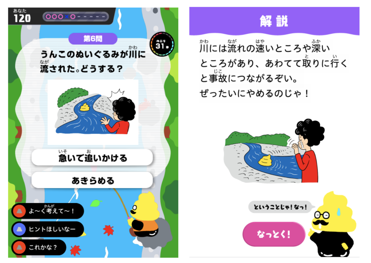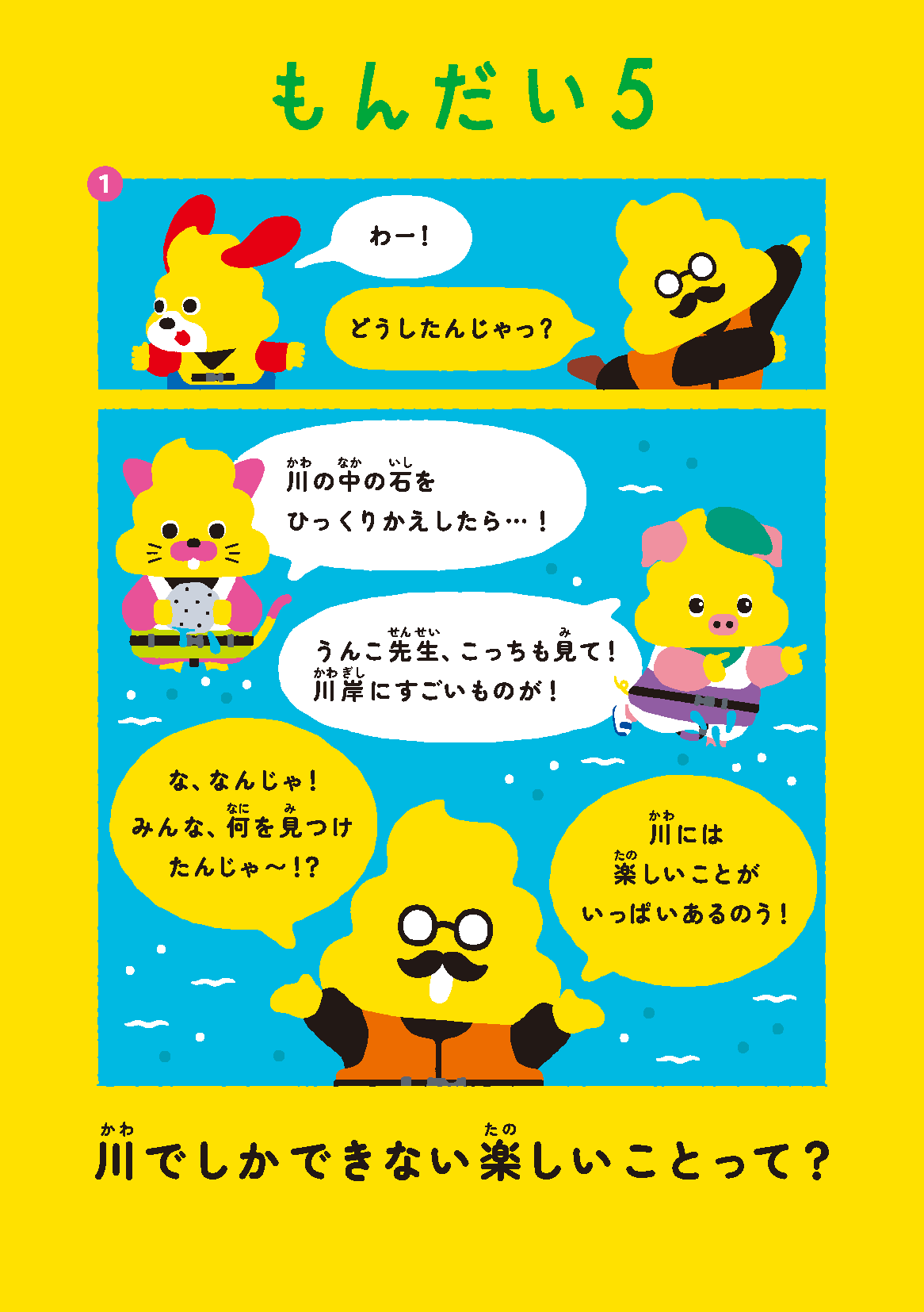 川遊びの楽しさに潜む危険やその安全対策を収録した、笑いながら学べる『うんこドリル “川の安全”』を公開いたします。