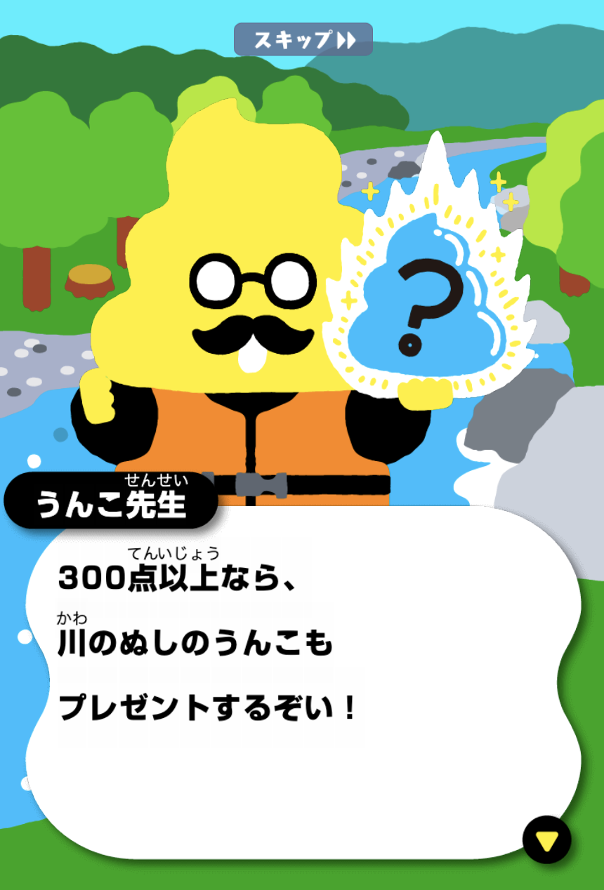 300点以上得点を獲得すると、オリジナルのうんこがもらえる仕組みになっています。