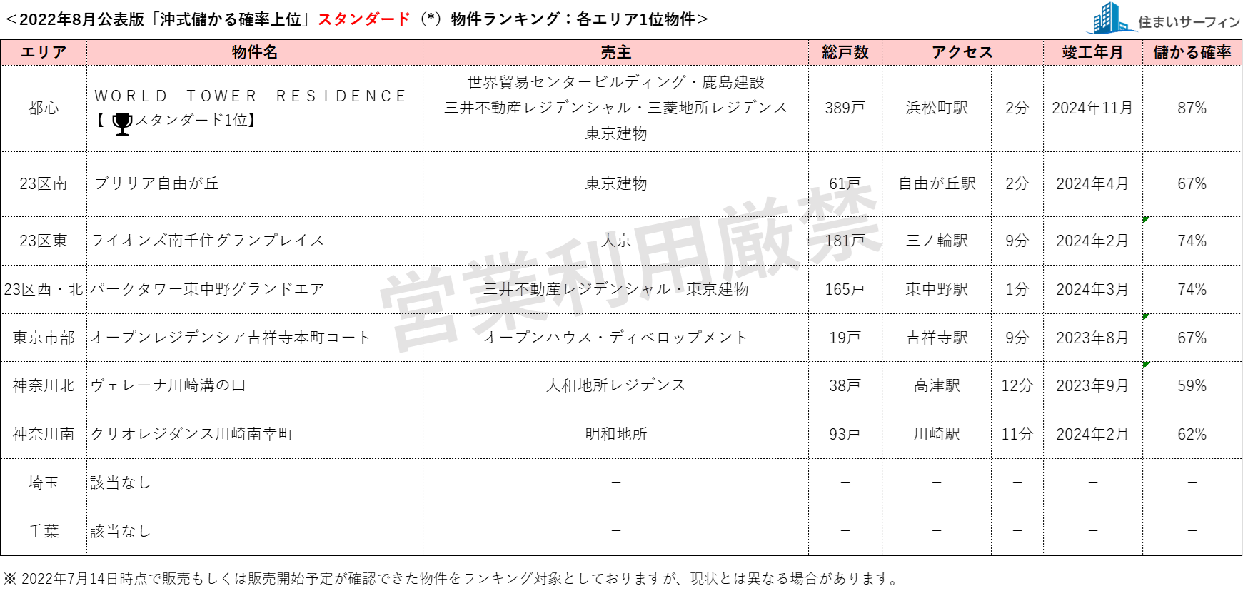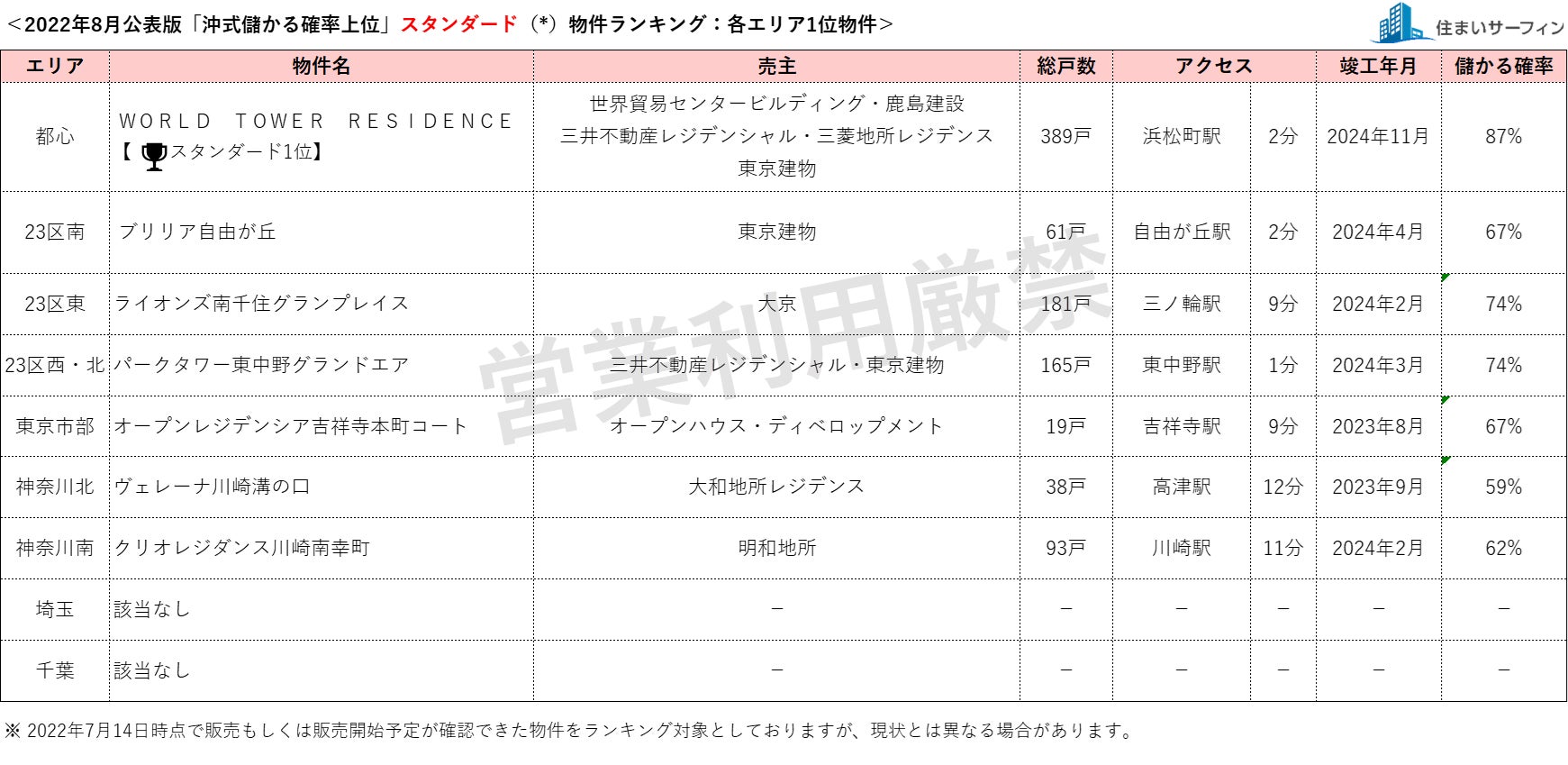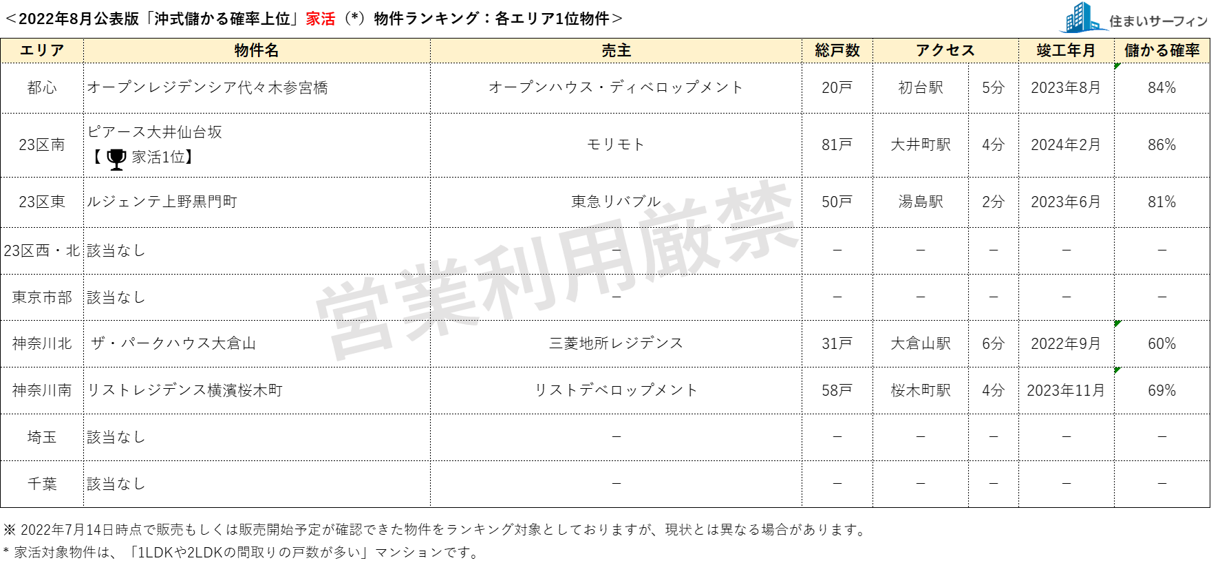 8月公表分は、2022年7月14日時点で販売もしくは販売予定が確認できた物件を対象としています。