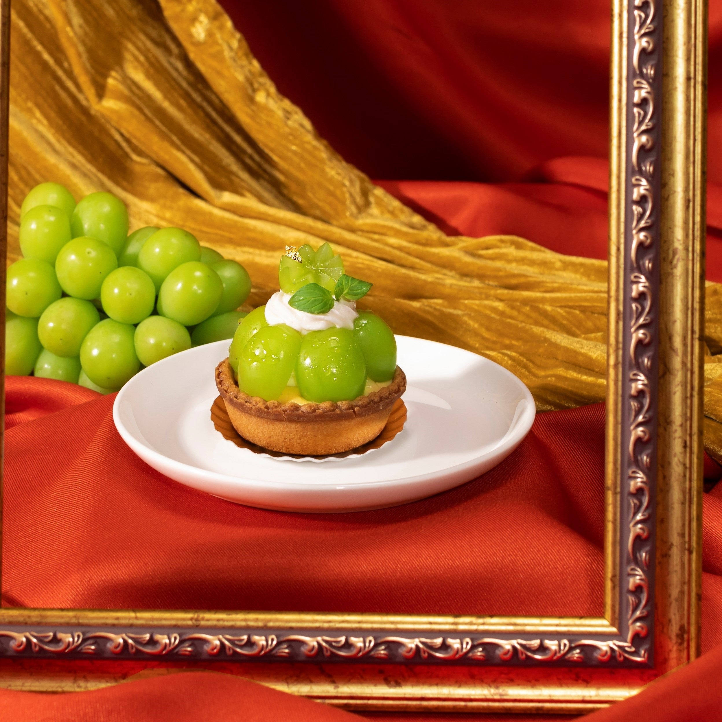 サクサクのタルト生地とカスタードクリームにシャインマスカットを贅沢に盛り付けた季節限定のタルトです。