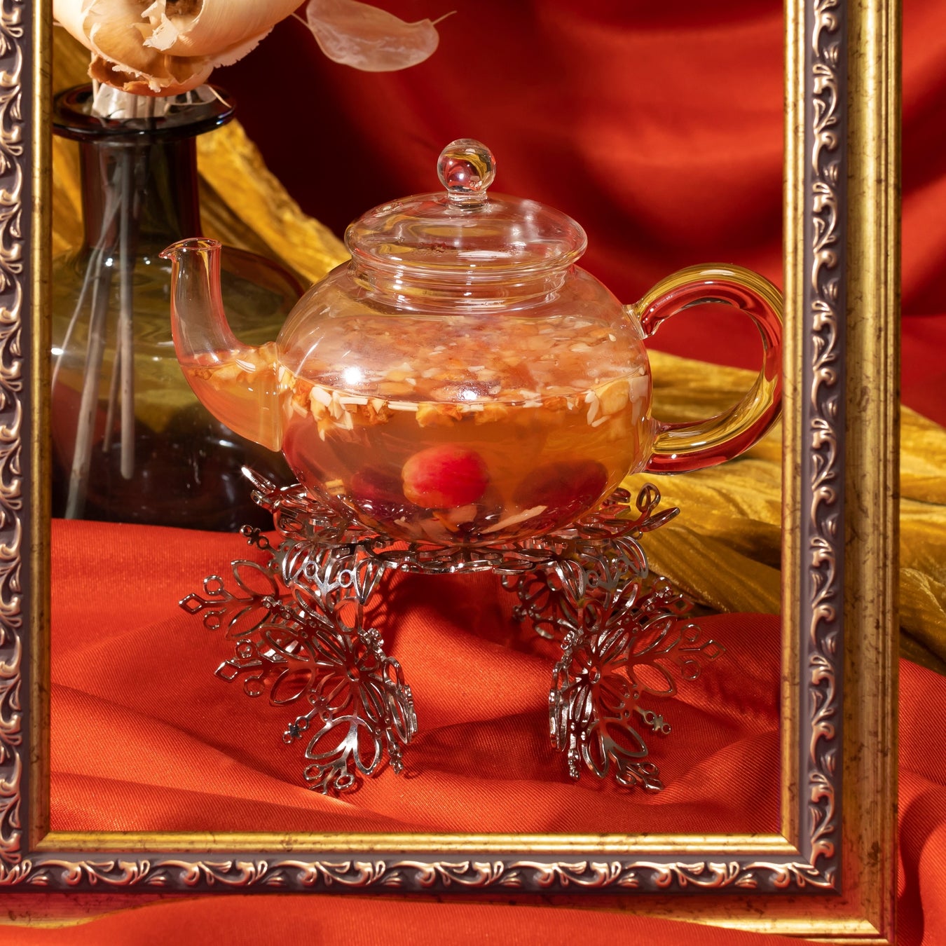 トロピカルドライフルーツとスパイスに葡萄を合わせた甘く華やかな香りと甘みに癒されるフルーツティーです。