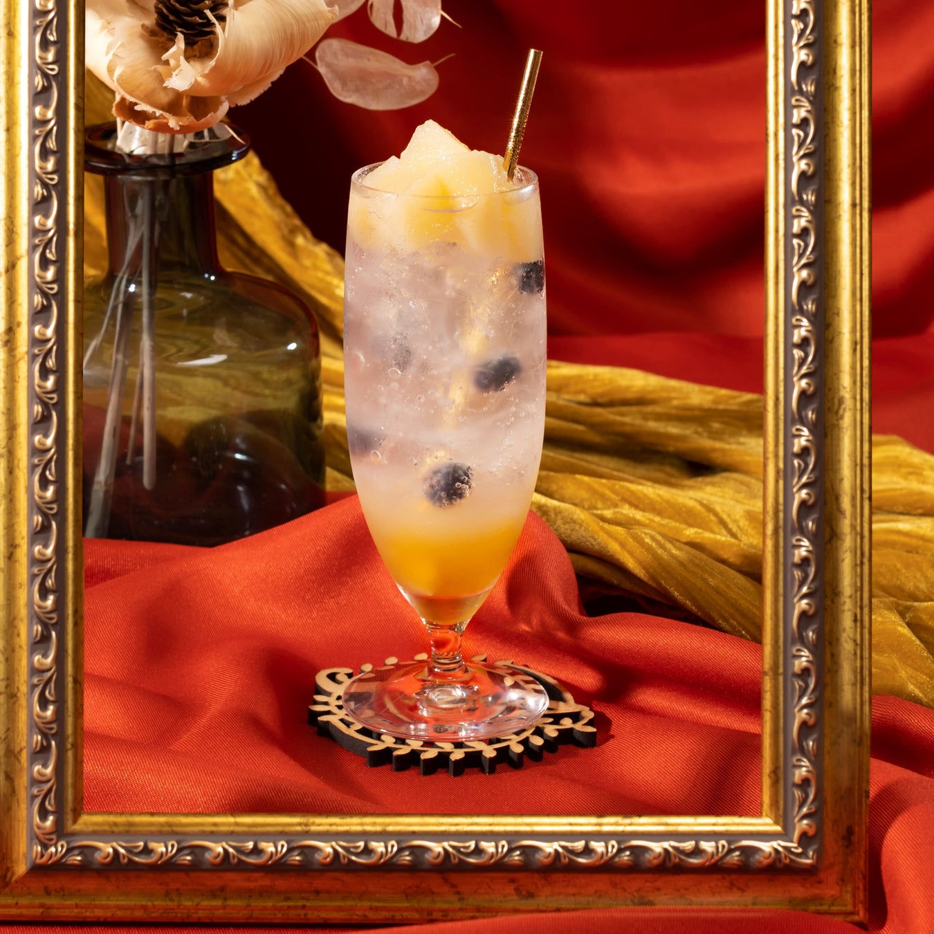 濃厚な洋ナシのシロップとたっぷりの果肉を贅沢に使用した炭酸ドリンクです。